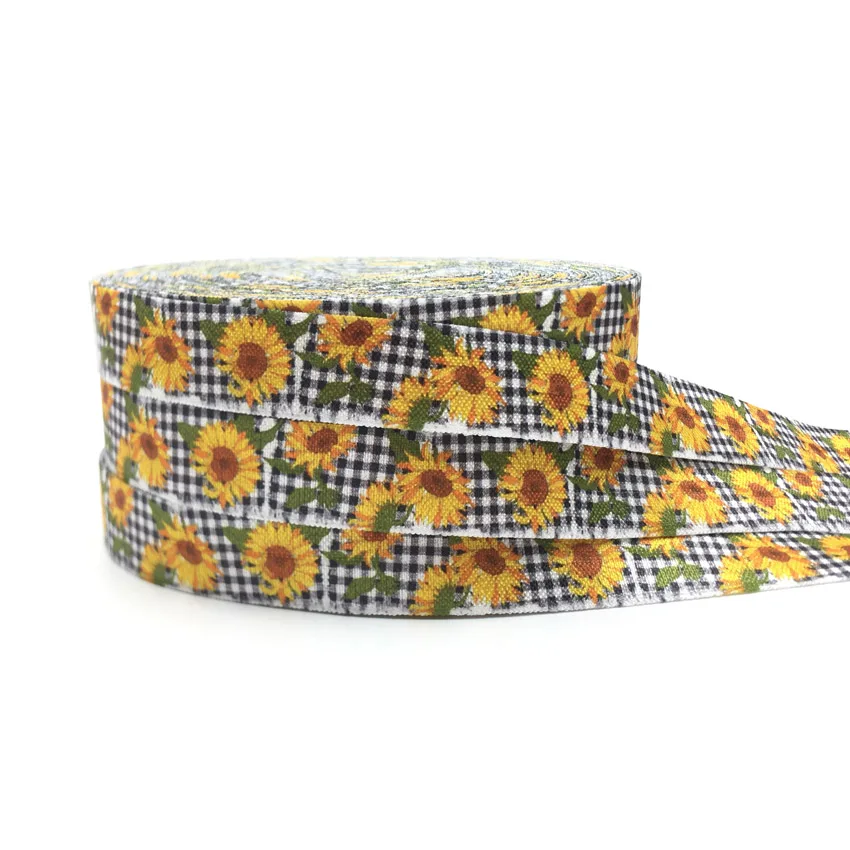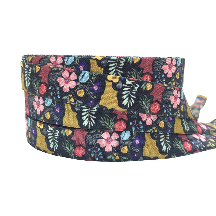 Эластичная лента для волос, 16 мм, с цветочным принтом