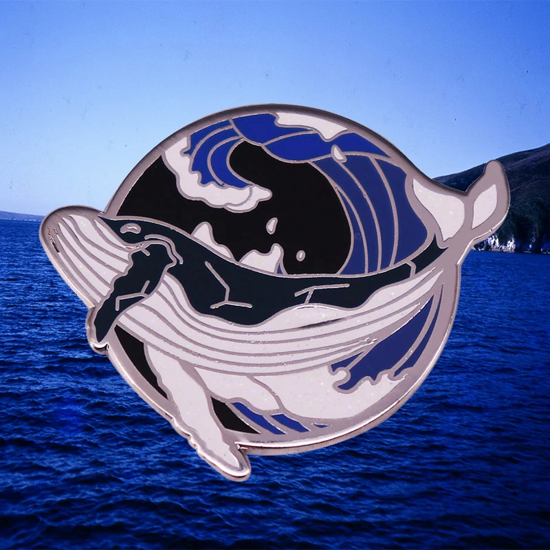 Эмалированная брошь с изображением сказочного синего Кита, морская волна, рыба, галактика, животное, металлический значок, лето! Иди на серфинг!