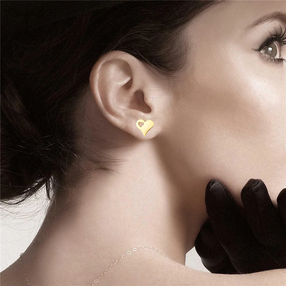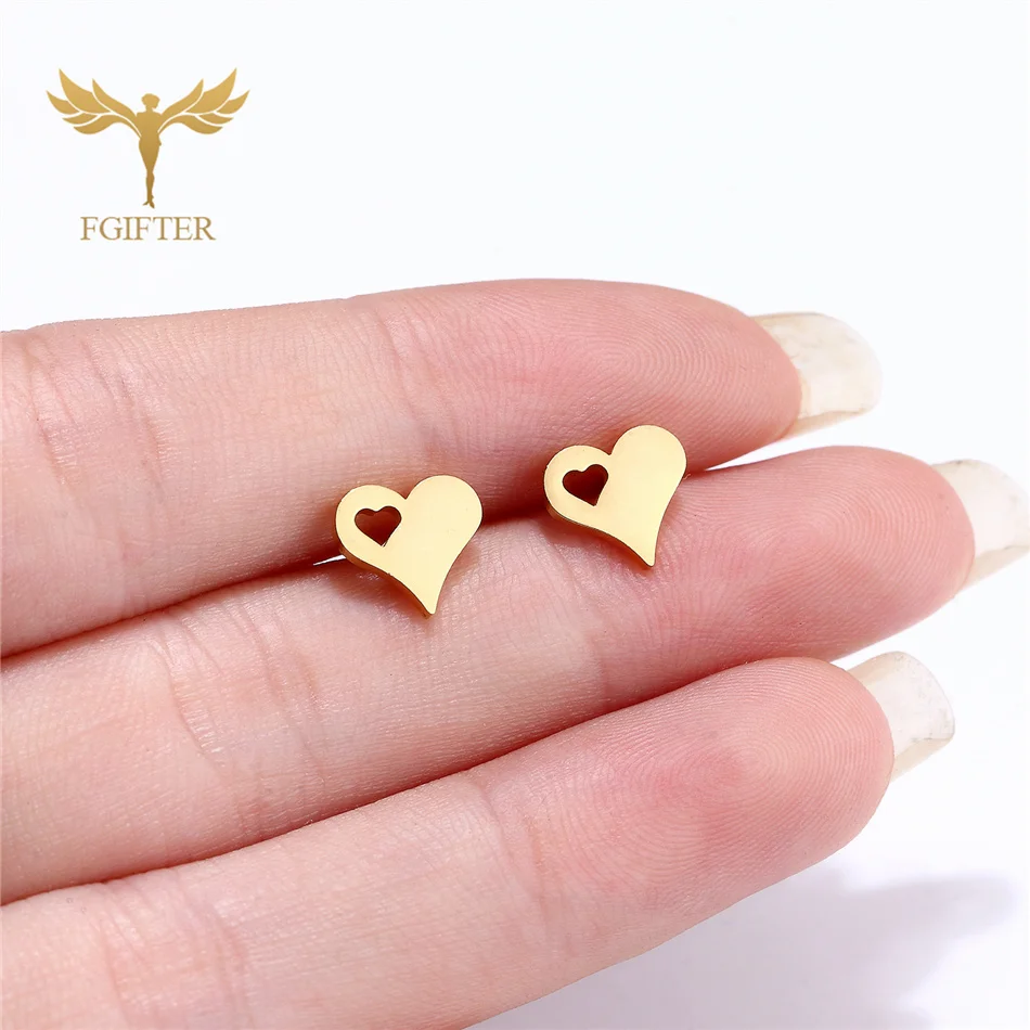 Золотые серьги в форме сердца, маленькие пустотелые серьги из нержавеющей стали, подходят для милых девушек, новые женские ювелирные изделия, оптовая продажа