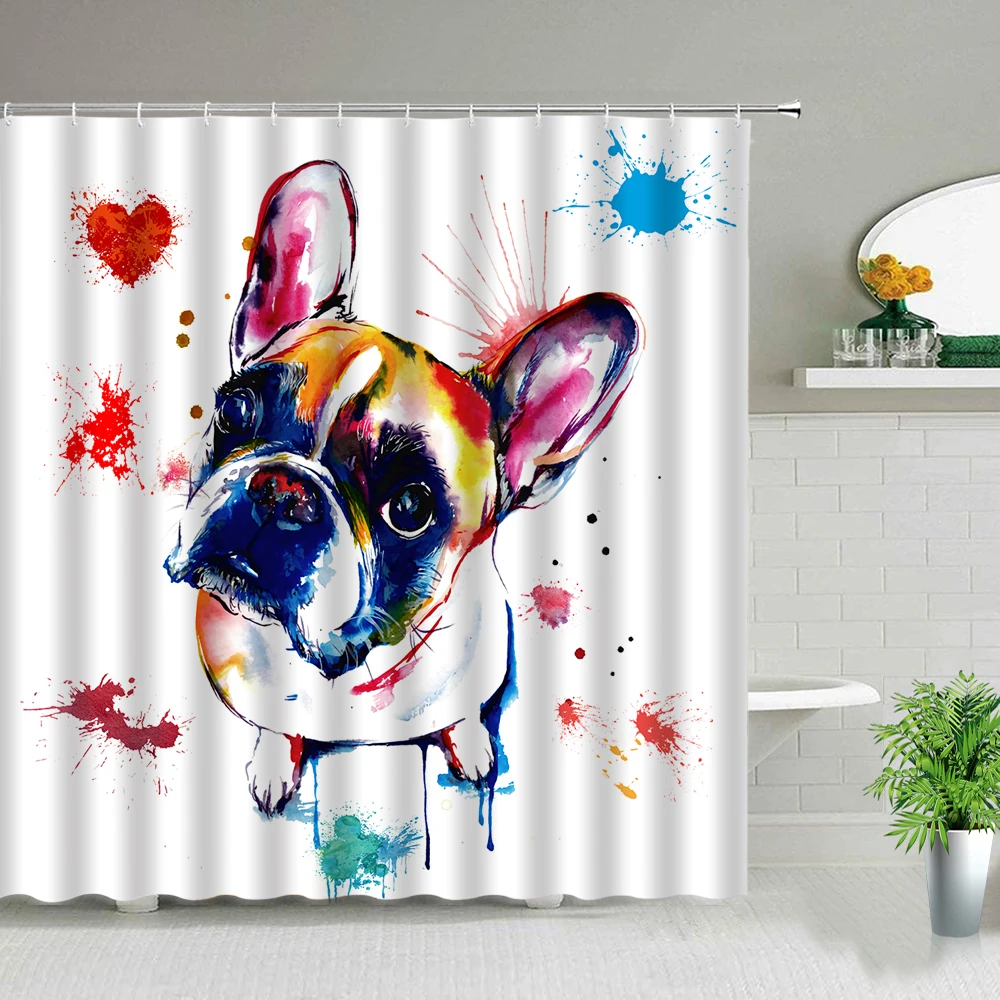 Водонепроницаемая Шторка для ванной, занавеска для ванной с рисунком бульдога, воды, с крючками, для домашних животных, собак