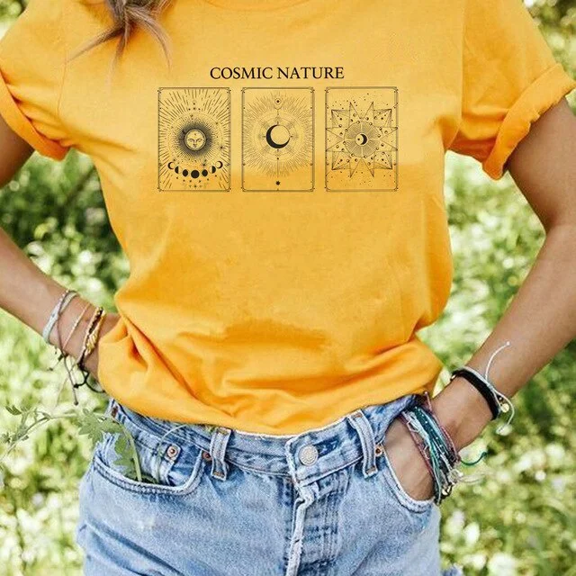 Женская Винтажная Футболка Cosmic Nature, Повседневная Свободная фу...