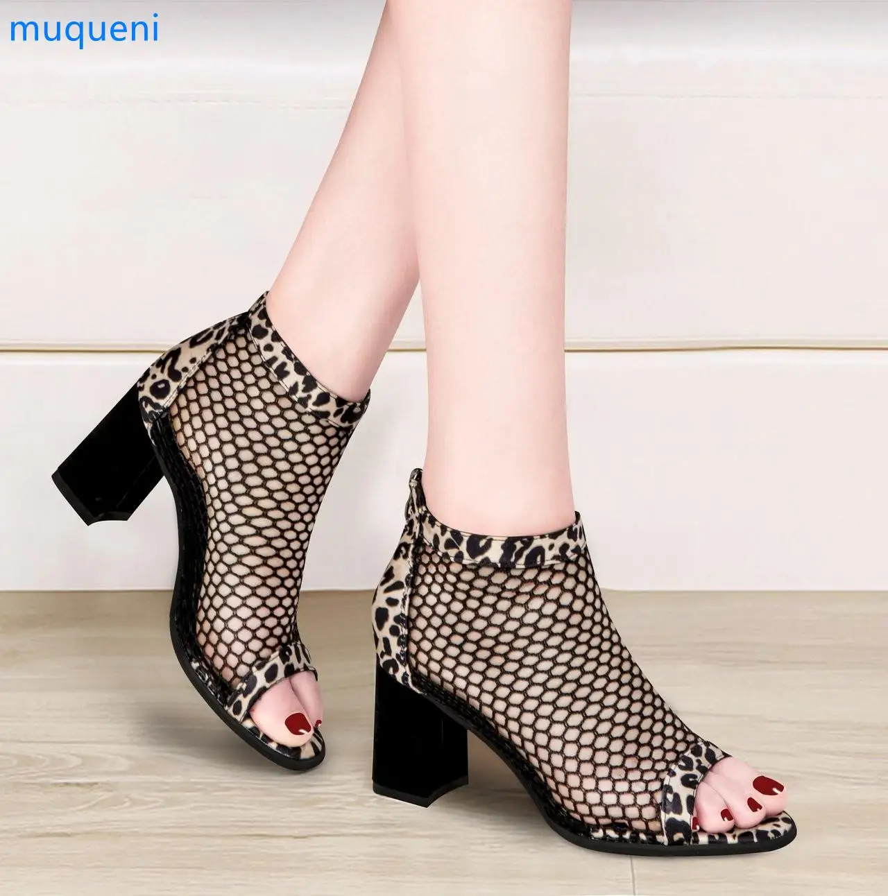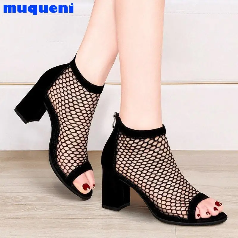 Женские босоножки на высоком каблуке, летние сетчатые сандалии с прорезиненными вставками, новинка 2021