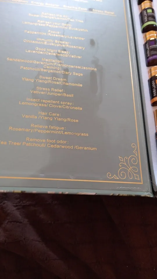 Очень доволен продуктом, как только вы открываете коробку, вы уже заметили запах некоторых эфирных масел, когда я попробовал их один за другим, я понял, что они действительно очень чистые из лучших, которые я пробовал до сих пор (и поверьте, что я попробовал много). Я обязательно куплю снова. Что-то выделяется в дополнение к качеству продукта является внимание и доброту продавца, большое спасибо