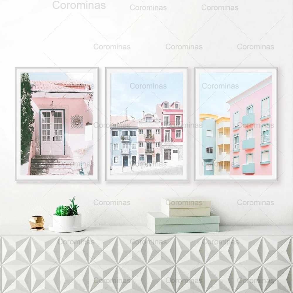 Португалия Румяна Розовый постер природный ландшафт модульный Hd Печать Лиссабон здание настенное Искусство Холст Живопись скандинавский рисунок домашний декор