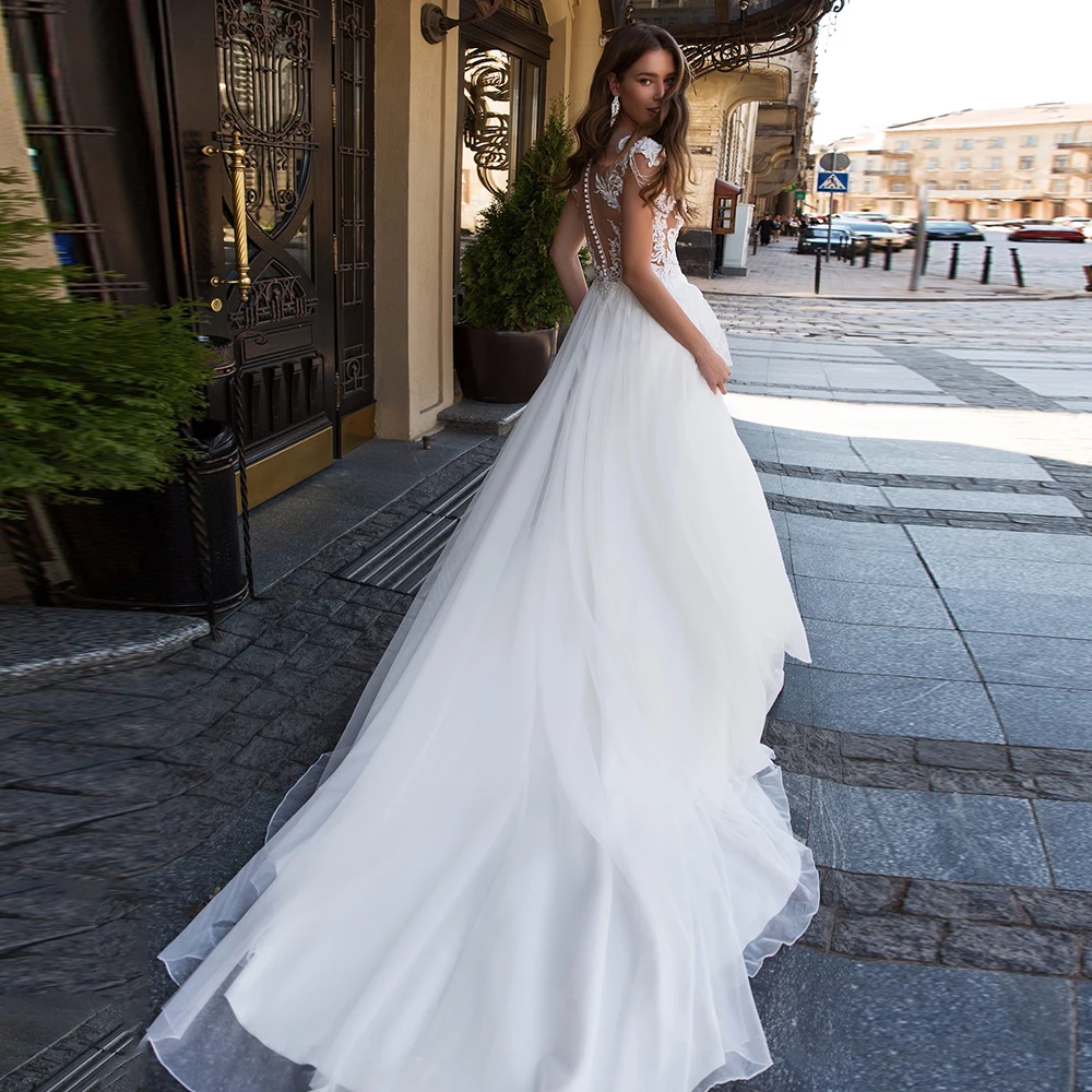 Свадебные платья, прозрачное кружевное платье с кружевными аппликац...