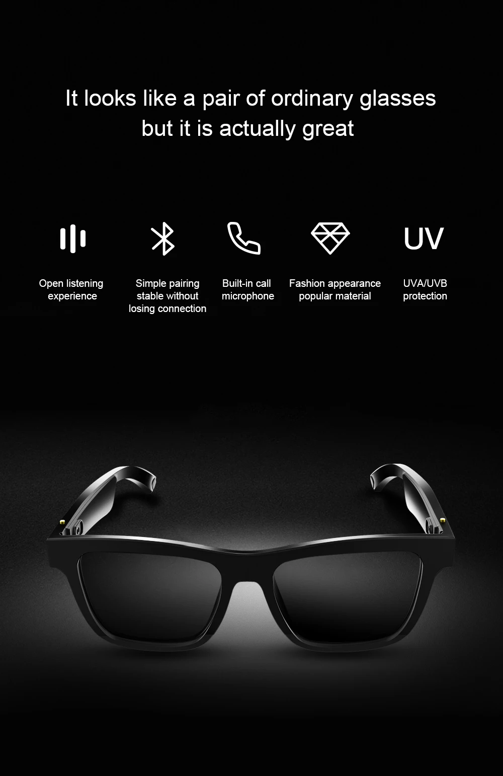 Умные аудио очки костной проводимости беспроводные Bluetooth наушники уличные спортивные водонепроницаемые стерео солнцезащитные очки с микрофоном