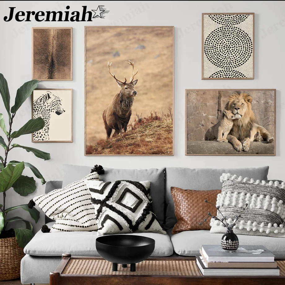 Современные диких животных лев, рисунок на холсте Абстрактная живопись с леопардовым принтом растения плакат Wall Art Nordic домашнего декора гостиной украшения Аксессуары