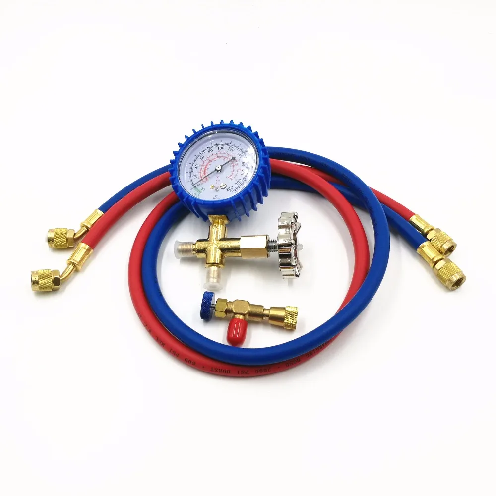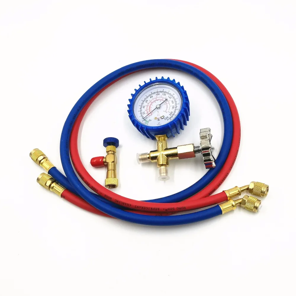 Применимо к: R12 R22 R13 R404AВключает:HS-466AL манометр2шт Плюс жидкая трубаR22 для 1/4 "SAE до 1/4" SAE адаптер безопасности кондиционер Зарядный Клапан