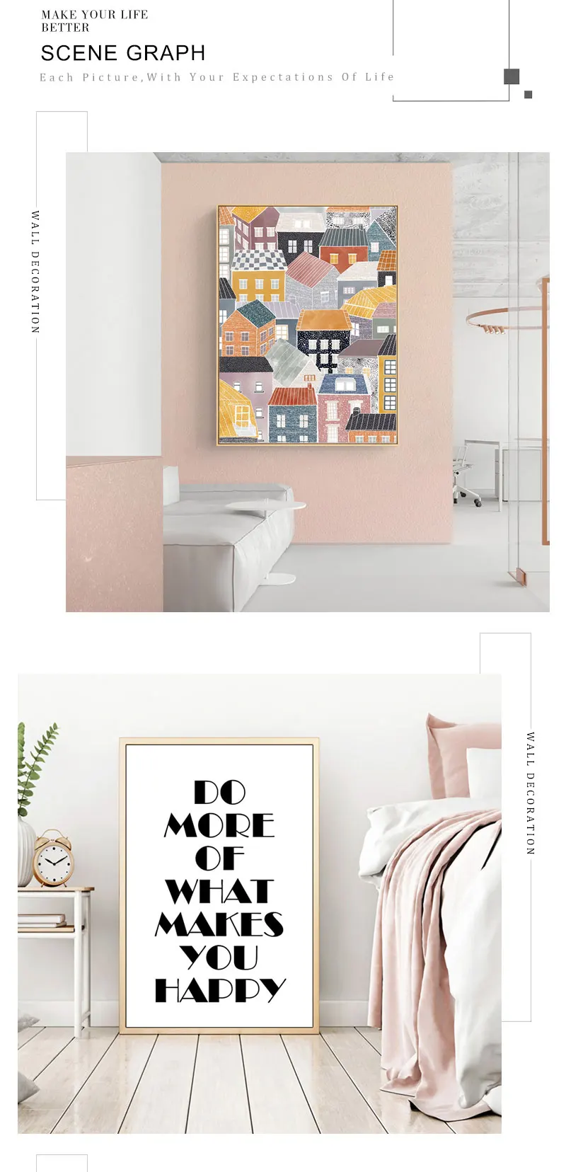 Красочные настенные картины с несколькими домами для женщин, плакаты в скандинавском стиле, цитаты, счастливые принты, картины для гостиной, домашний декор