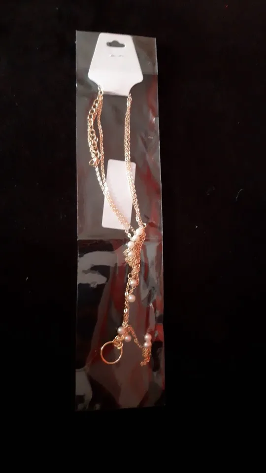 Пришёл товар быстро, заказывала с кольцом в серединке, немного кривовато висит, одна сторона цепочки длиннее другой, а так, всё хорошо.