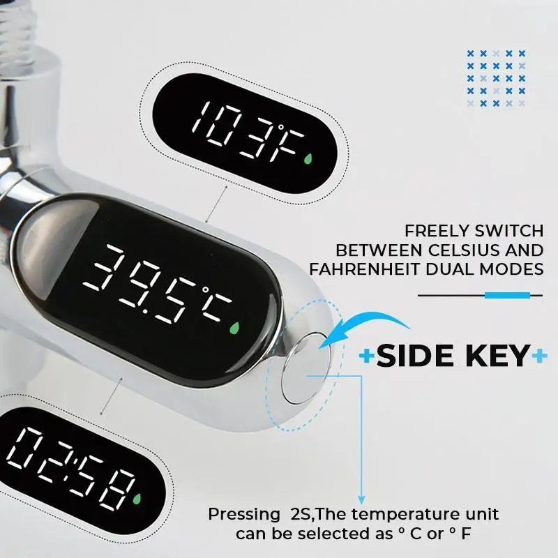 [Водонепроницаемость IPX7, простота установки]Новый водонепроницаемый светодиодный экран, а также фильтры и водонепроницаемые уплотнения. Простая Боковая кнопка, одна кнопка для решения переключателя отображения температуры, одна кнопка для решения переключателя времени и температурного режима.