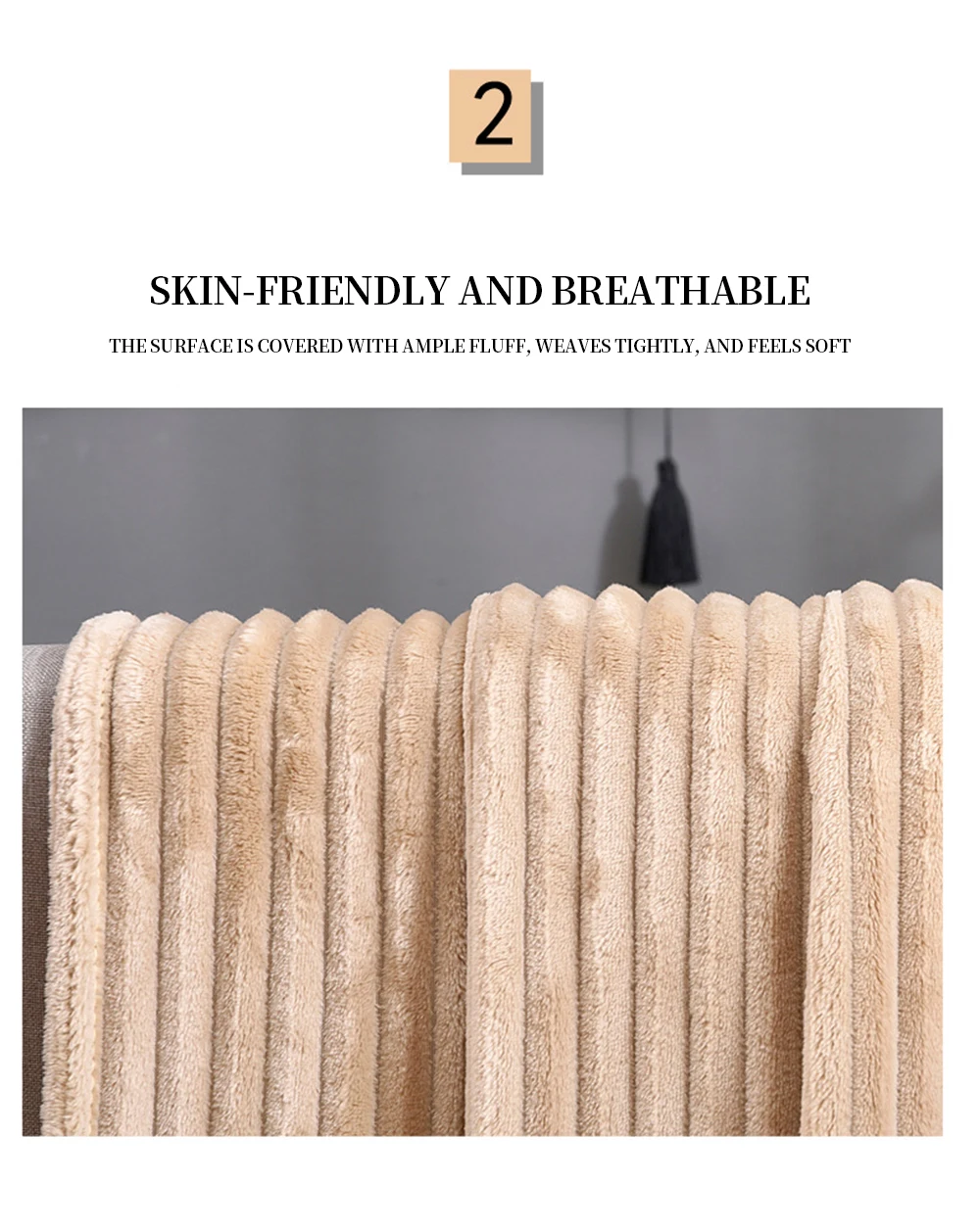 Фланелевое однотонное утолщенное одеяло в полоску, мягкое покрывало...