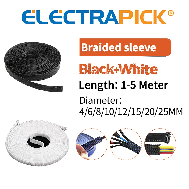 Прямая поставка, 15 м изолированный плетеный рукав, 24681012152025 мм, плотный ПЭТ защитный кабельный сальник, расширяемый кабельный рукав