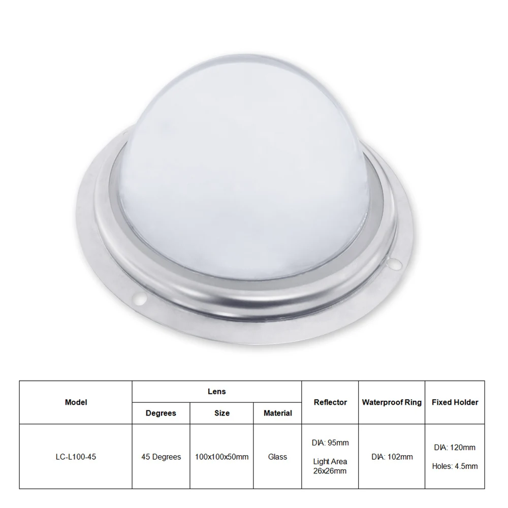 Светодиодная линза 45 градусов, оптическое стекло 100 мм + зеркальный коллиматор + 20 Вт 30 Вт 50 Вт 120 Вт, мощный светодиодный сердечник, Скоба для фиксации чипа