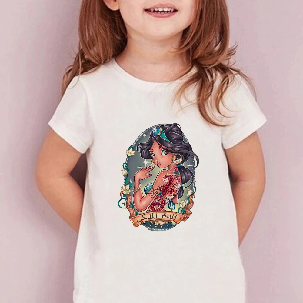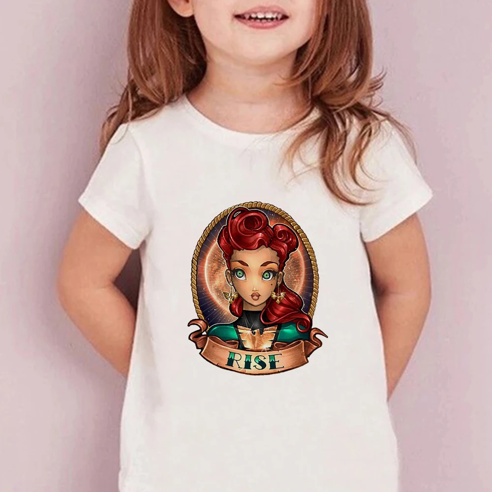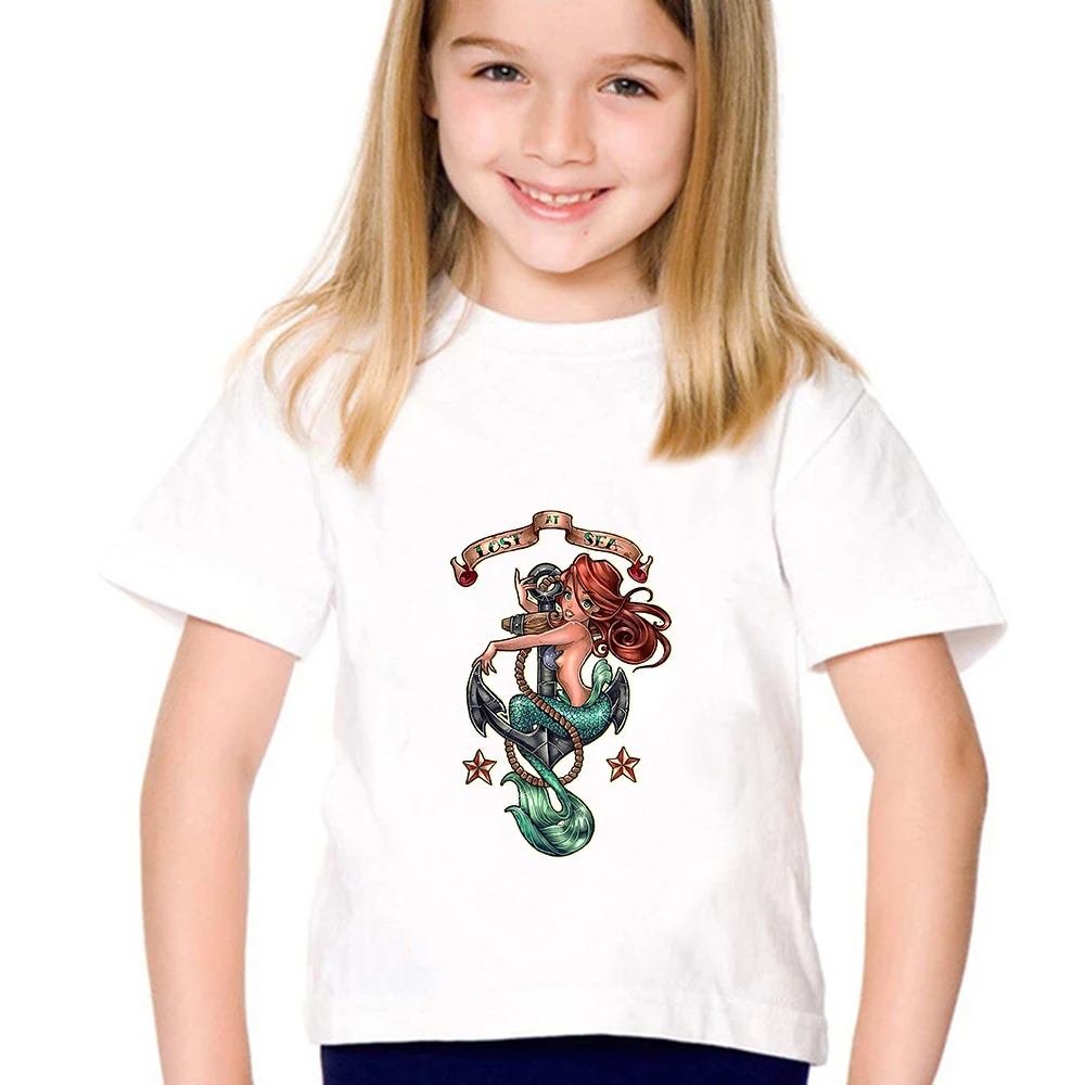 Детские топы с татуировками и сиреной Disney, повседневная мультяшная футболка принцессы Ариэль, маленькая Русалочка, уличная одежда в стиле Харадзюку для девочек