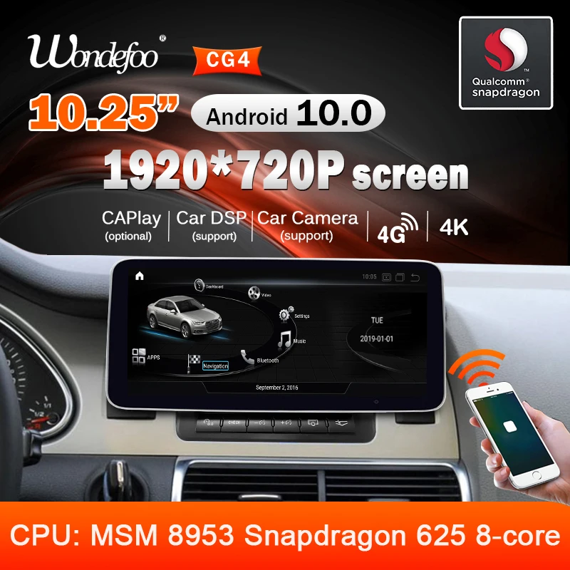 Автомобильное радио Snapdragon, Android 10 для Audi Q7 2005-2009, мультимедийный плеер, Авторадио, GPS-навигация, аудио стерео экран, bluetooth