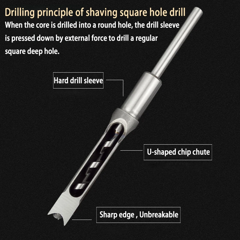 Сверло с квадратным отверстием не может быть использовано на электрической дрели, сверло с квадратным отверстием должно подходить для сверления с квадратным отверстием (врезной и tenon станок) для использования.