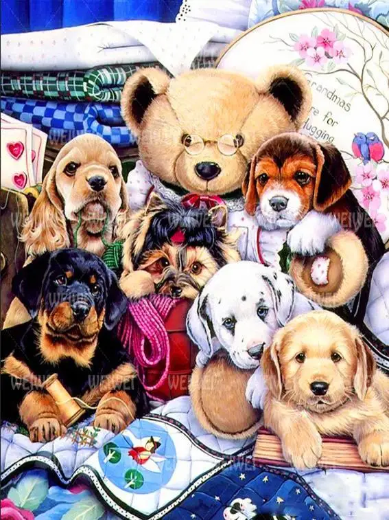 Алмазная 5D картина с разными мультяшными собаками, вышивка крестиком, алмазная вышивка, набор с изображением животных и котов, Настенная картина стразы, мозаика