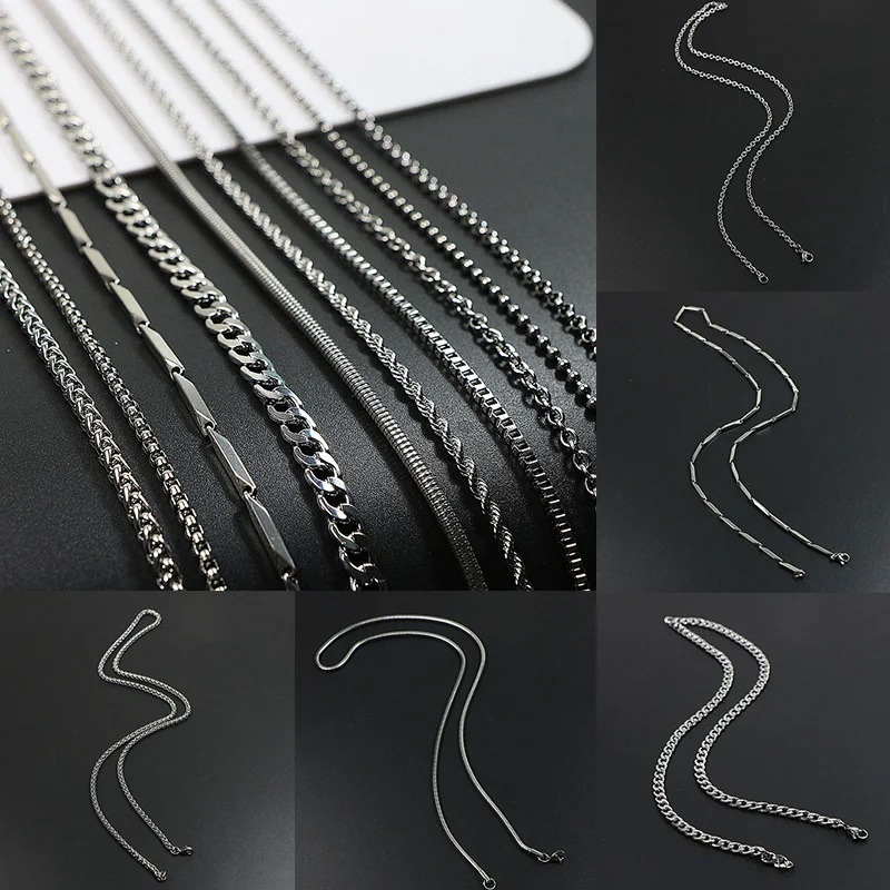 Цепочка из титана и нержавеющей стали серебряного цвета, ожерелье из металла без кулона, чокер, ювелирные изделия для мужчин и женщин, аксессуар сделай сам