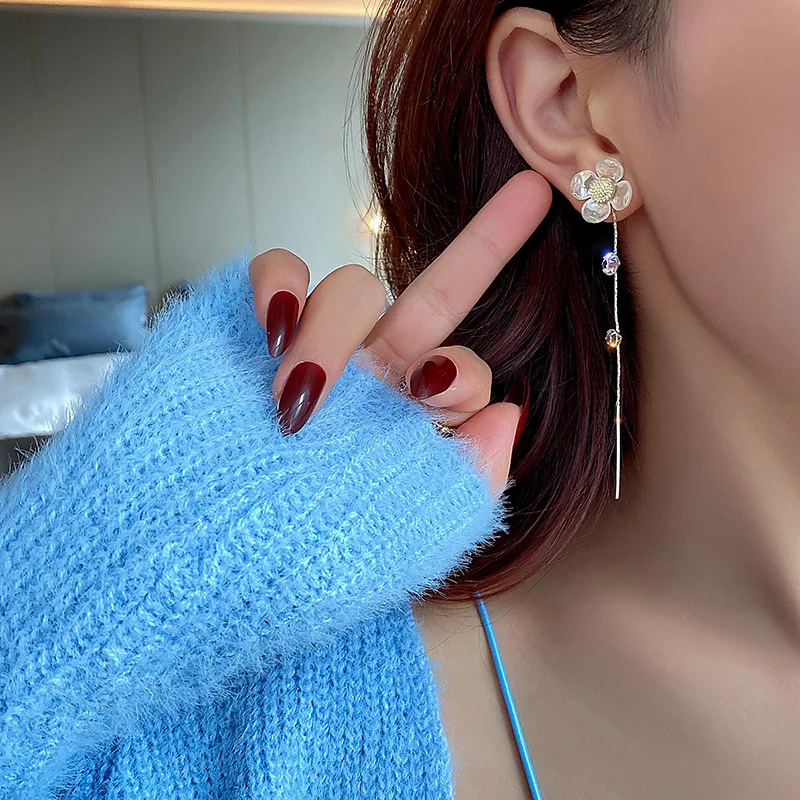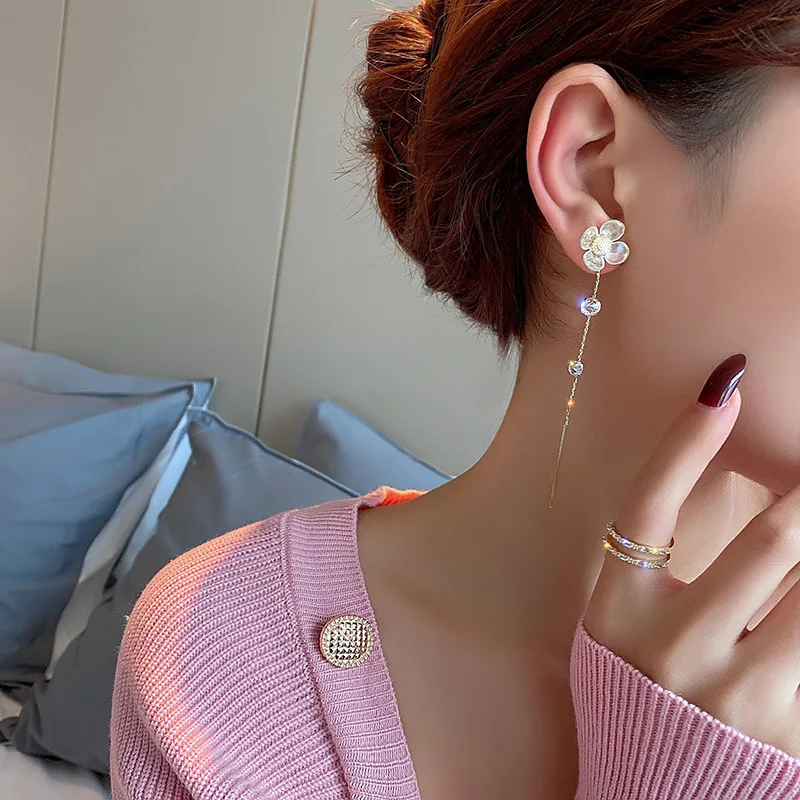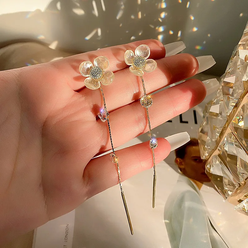 ZDMXJL новые женские серьги Французский Простой Стиль Длинные Цветочные кисточки Висячие серьги для девушек Подарок для невесты Свадебные украшения Оптовая продажа
