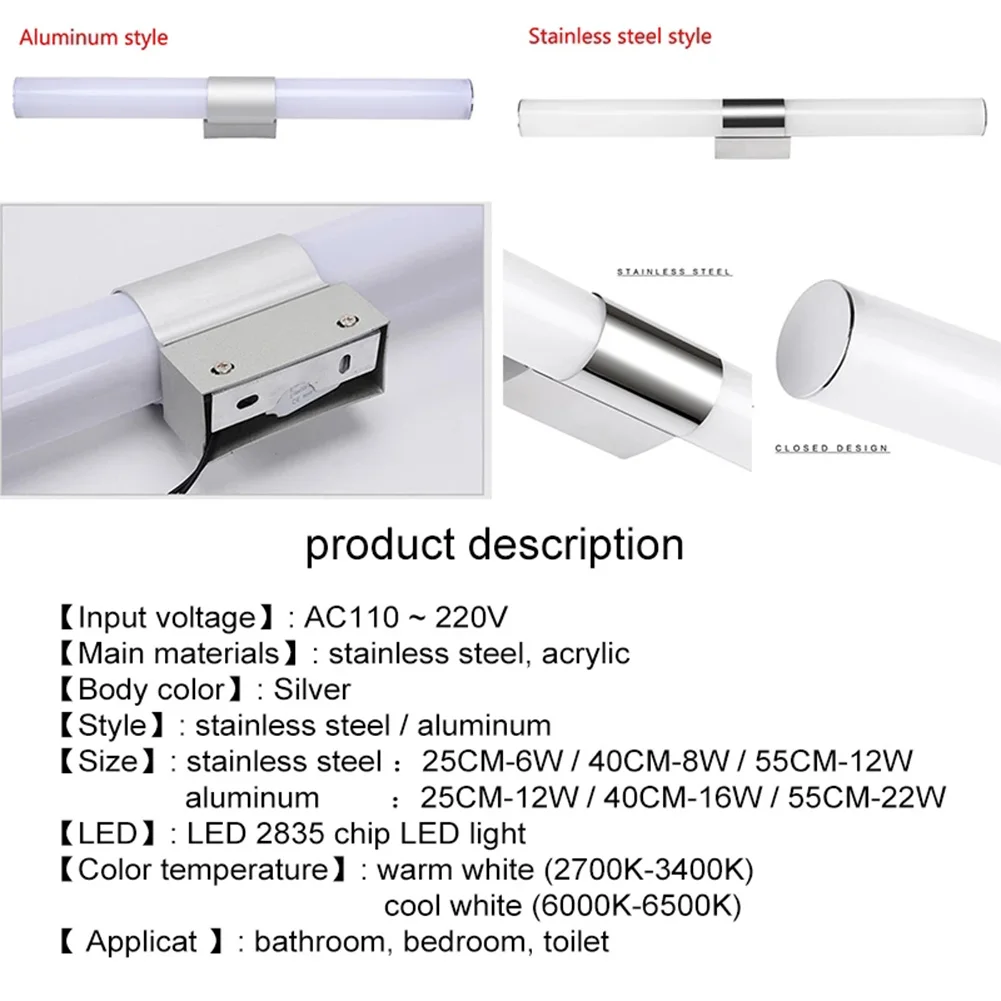 Современная простая акриловая настенная лампа для ванной, кабинета, зеркала для макияжа светодиодный Светодиодная трубка для гостиной, туалета, комнатное бра, светильник