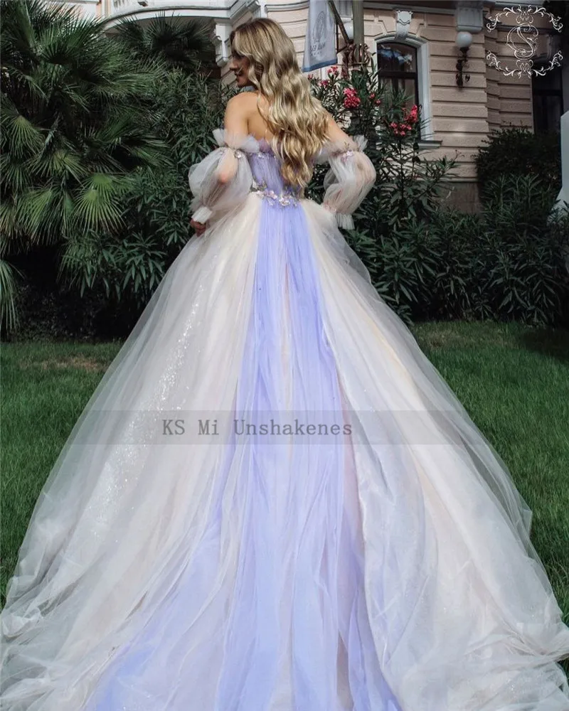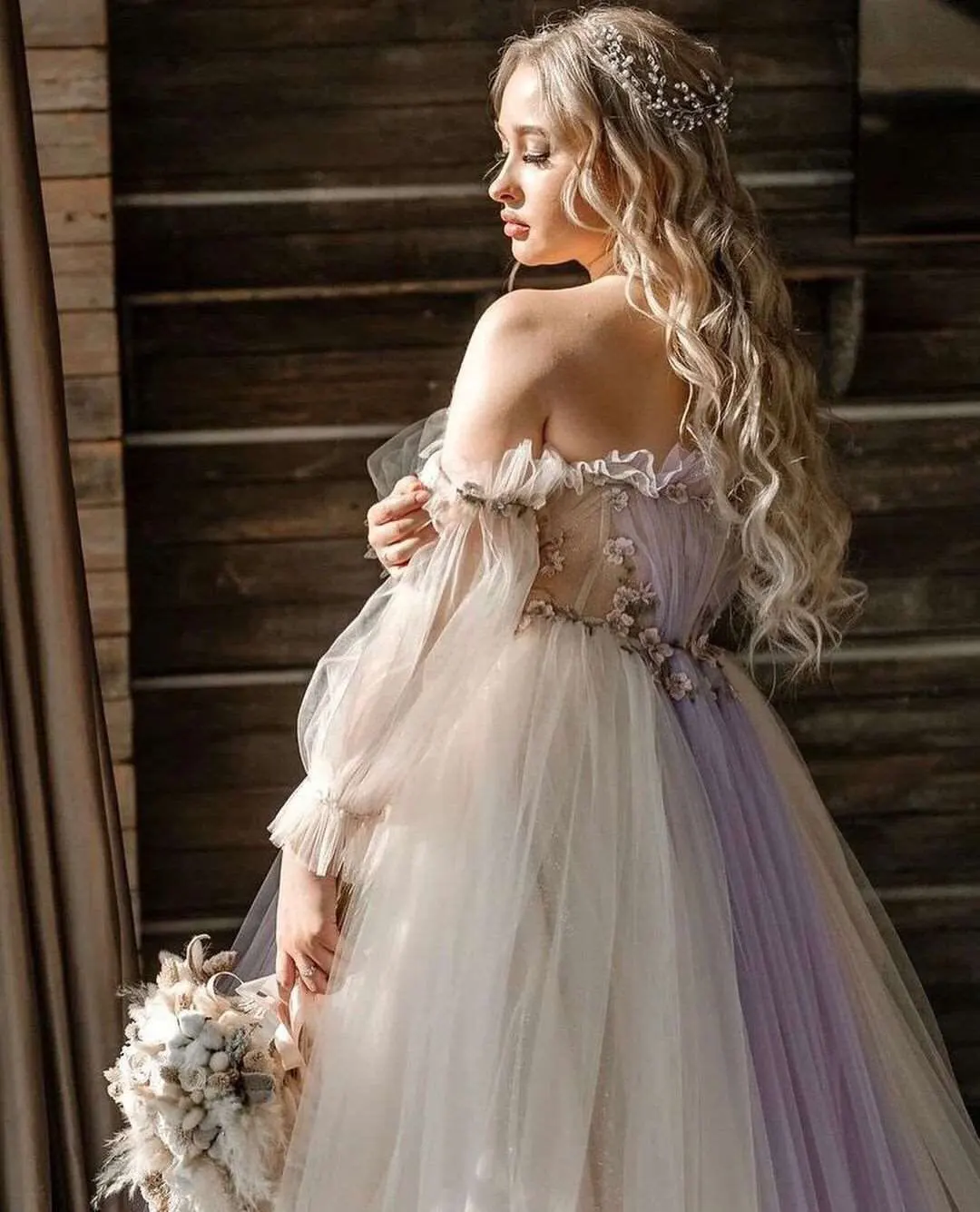 Сказочное красочное свадебное платье с пышными рукавами съемные фотоснимки платья невесты 2021 ТРАПЕЦИЕВИДНОЕ кружевное винтажное искусственное платье