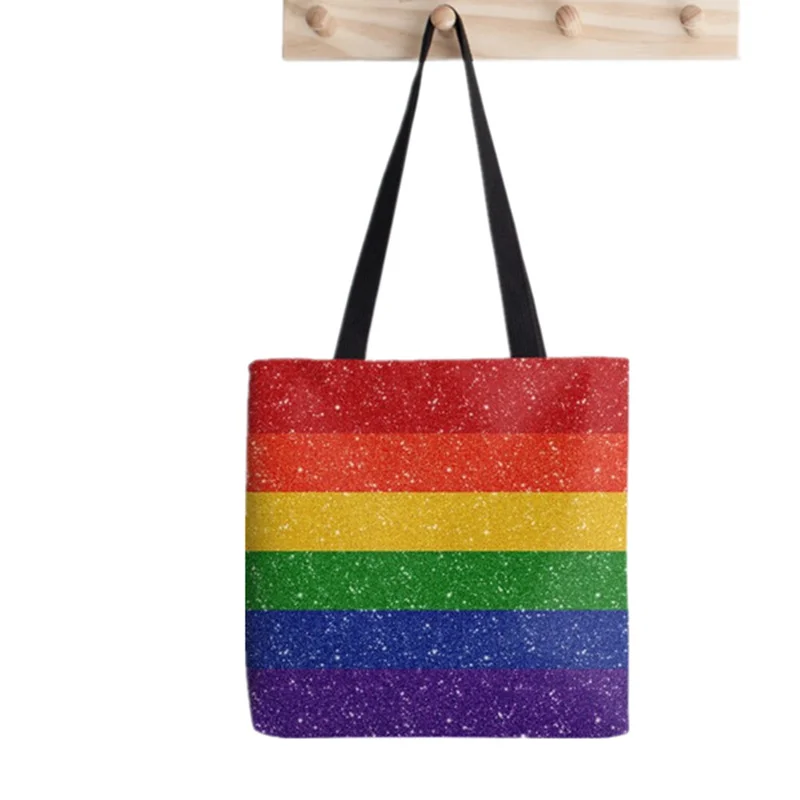 Сумка-шоппер с радужным флагом, женская сумка-тоут с принтом, женская сумка-шоппер в стиле Харадзюку, Женская холщовая сумка-шоппер на плечо