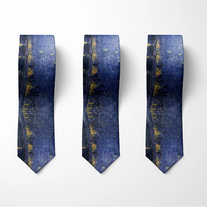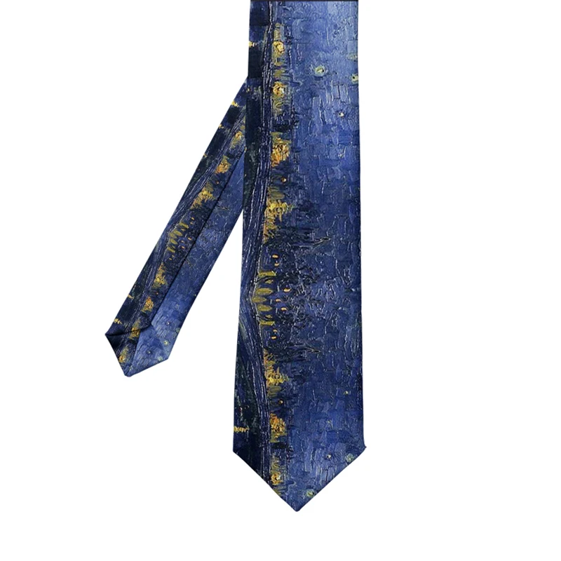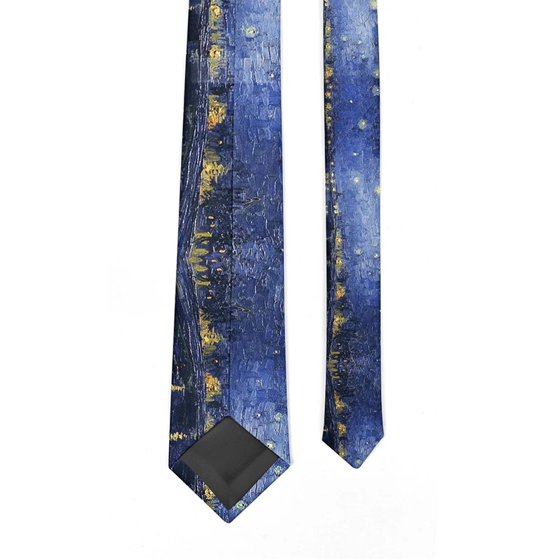Мужской галстук с картиной Ван Гога, винтажный галстук Звездная ночь над Роном, ширина 8 см, рубашка для свадебной вечеринки, тонкий галстук