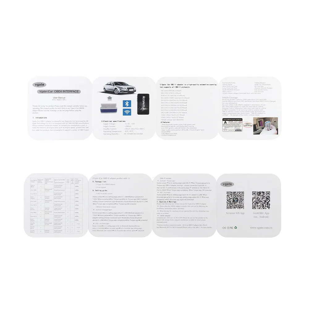 Адаптер Vgate iCar Pro OBDII-это мощный автомобильный диагностический инструмент.Он совместим со всеми спецификациями OBD II / EOBD. Различные модели беспроводного подключения для подключения вашего смартфона или планшета. Он считывает данные автомобильного двигателя в режиме реального времени, такие как скорость двигателя, время зажигания, обшивка топлива, температура воды, расход топлива, он поддерживает различные приложения OBD II.Vgate iCar Pro Спецификация:Поставка Напряжение: 11,5 V-15VТок поставки: <200 мАТок в режиме ожидания: <30 мА (TONWON Pro = <3 мА)Рабочая температура: -40 ℃ - 85 ℃Рабочая влажность: 5% - 95% RH Non-DewfallVgate iCar Pro OBD II adpater-это высококачественный автомобильный инструмент для сканирования, поддерживает все протоколы OBD-II:SAE J1850 ШИМ (41,6 кбод)SAE J1850 VPW (10,4 кбод)ISO9141-2 (5 бод инициализации, 10,4 кбод)ISO14230-4 KWP (5 бод инициализации, 10,4 кбод)ISO14230-4 KWP (быстрая инициализация, 10,4 кбод)ISO15765-4 CAN (11 бит ID, 500 кбод)ISO15765-4 CAN (29bit ID, 500 кбод)ISO15765-4 CAN (11 бит ID, 250 кбод)ISO15765-4 CAN (29 бит ID, 250 кбод)SAE J1939 CAN (29bit ID, 250 * кбод)USER1 CAN (11 * бит ID, 125 * кбод)USER2 CAN (11 * бит ID, 50 * кбод)* Настройки по умолчанию (настраиваемые пользователем)Характеристики Vgate iCar Pro:Чтение диагностических кодов неисправностей, как общих, так и специфических для производителя, и отображение их значения. (более 3000 общих кодов в базе данных).Очистить коды неисправностей и выключить MIL ("Проверьте двигатель" светильник)Двигатель об/минРасчетное значение нагрузкиТемпература охлаждающей жидкостиСостояние топливной системыСкорость транспортного средстваКраткосрочная топливная отделкаДолгосрочная топливная отделкаДавление впускного коллектораПредоплата времениТемпература впускного воздухаРасход воздухаАбсолютное Положение Дроссельной заслонкиНапряжение кислородного датчика/соответствующая кратковременная топливная планкаСостояние топливной системыДавление топливаМногие другие...Покрытие транспортного средства:Работает на всех транспортных средствах OBD2 (начиная с 1996 года в США) и транспортных средствах EOBD (бензинАвтомобили с 2001 года и дизельные автомобили из 2003/2004 Европы)1 x Vgate iCar Pro OBDII1 x Руководство пользователяVLinker MC(WIFI + Bluetooth + BLE + Bluetoot) (1)