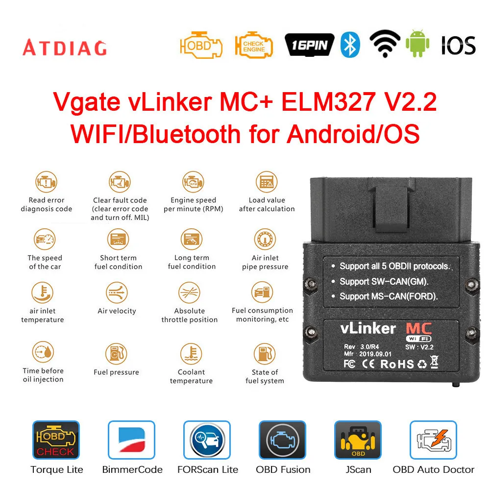 Оригинальный Vgate vLinker MC + ELM 327 V2.2 Bluetooth 4,0 WIFI ELM327 OBD2 автомобильный диагностический инструмент для Android/IOS сканер OBD 2