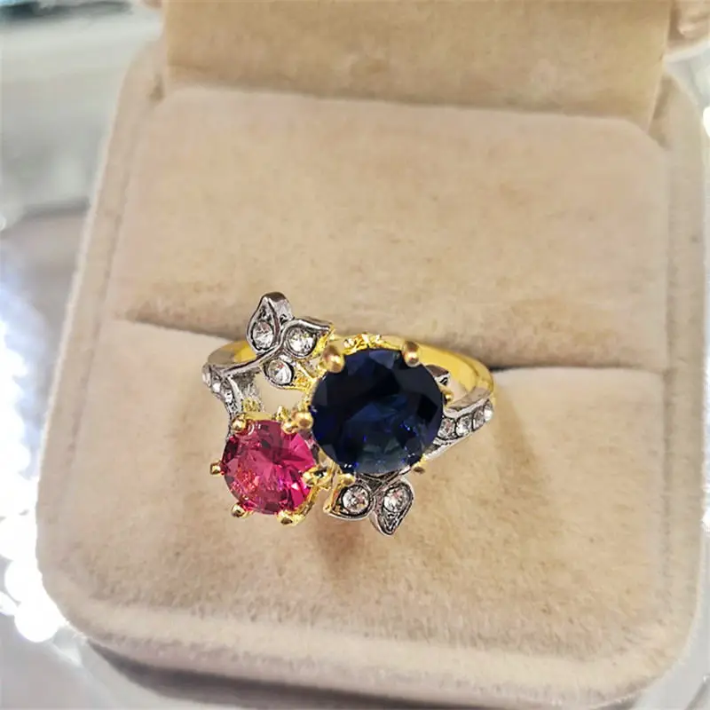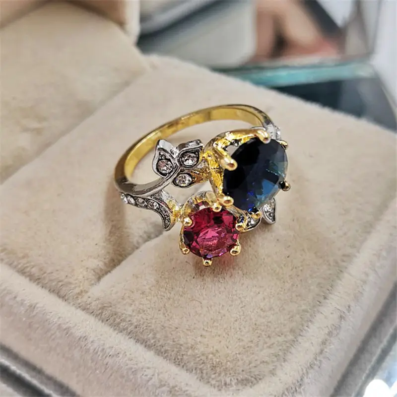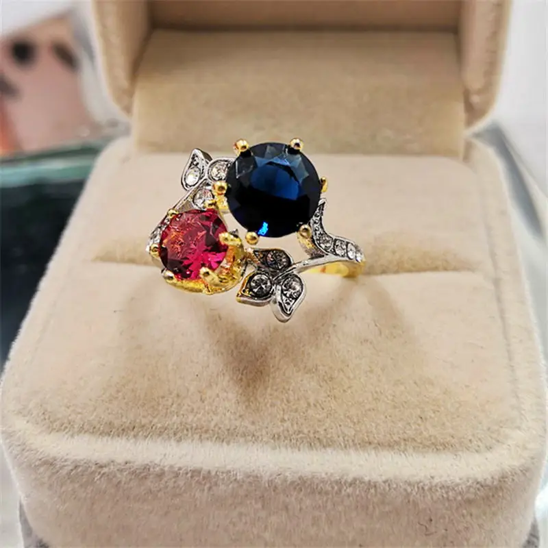 Модный Круглый красного и синего цвета с украшением в виде кристаллов женские Кольцо из Белого циркония листья в форме кольца для женщин вечерние ювелирные изделия аксессуары
