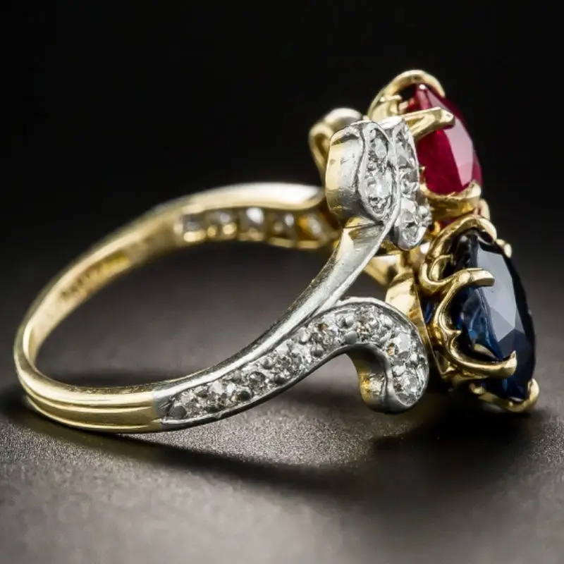 Роза красный камень циркон кольца для женщин винтажные цвета обещан...