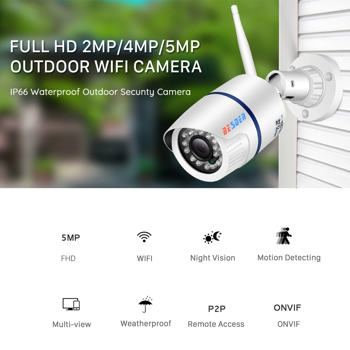 IP-камера BESDER уличная Водонепроницаемая с поддержкой Wi-Fi, 5 Мп и слотом для SD-карты