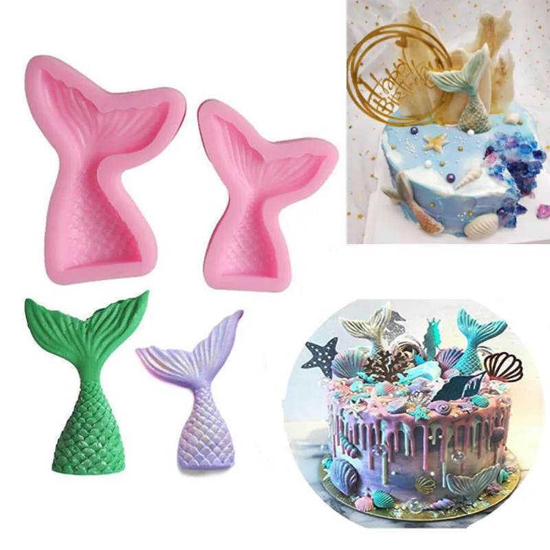 1 шт. силиконовая форма хвост русалки, паттен, Жевательная паста, шоколадная помадка, формы для торта, формы для конфет, праздничный инструмент для украшения кексов