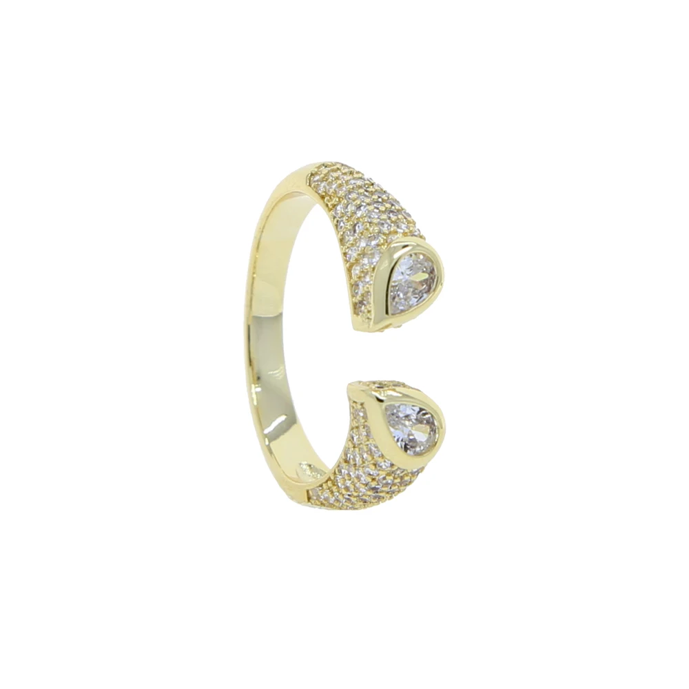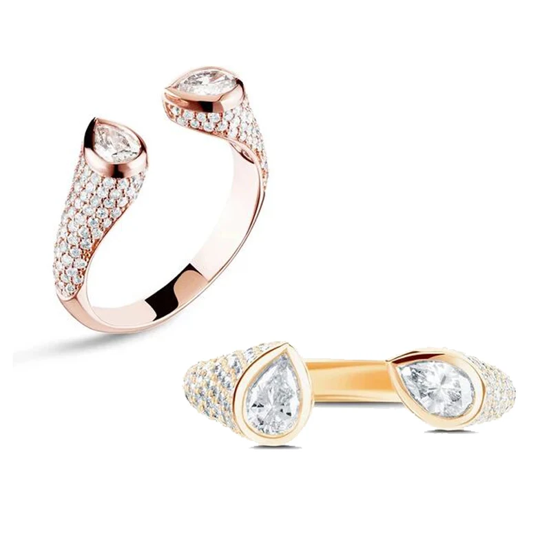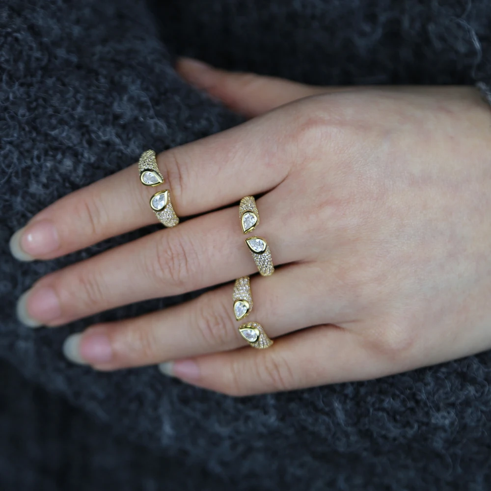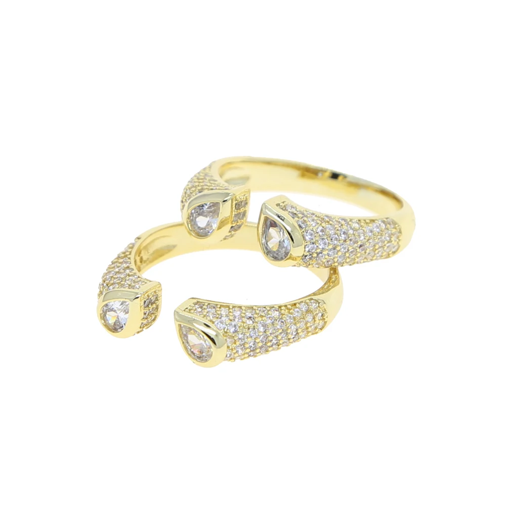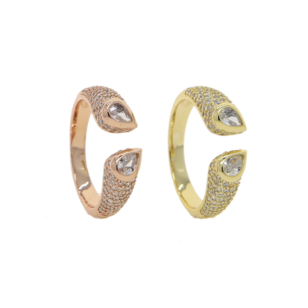 Открытое регулируемое кольцо с фианитом для женщин и девушек, кольца розового золота с микро-паве и белыми фианитами в форме слезы