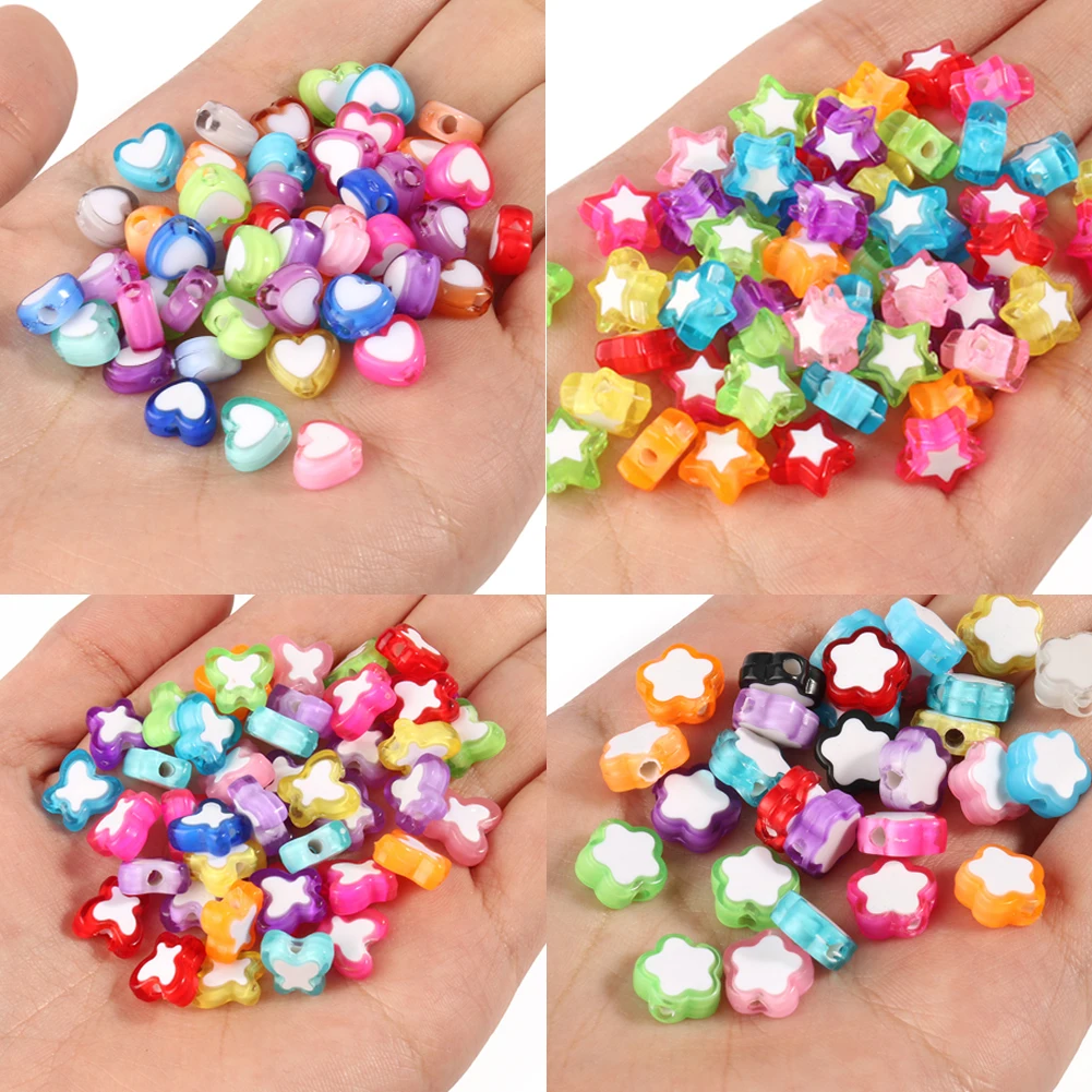100 шт Смешанные цвета звезда/Сердце/цветок/форма бабочки акриловый свободный разделитель бисер бусины для изготовления ювелирных изделий DIY аксессуары для браслета