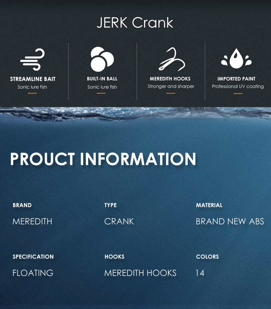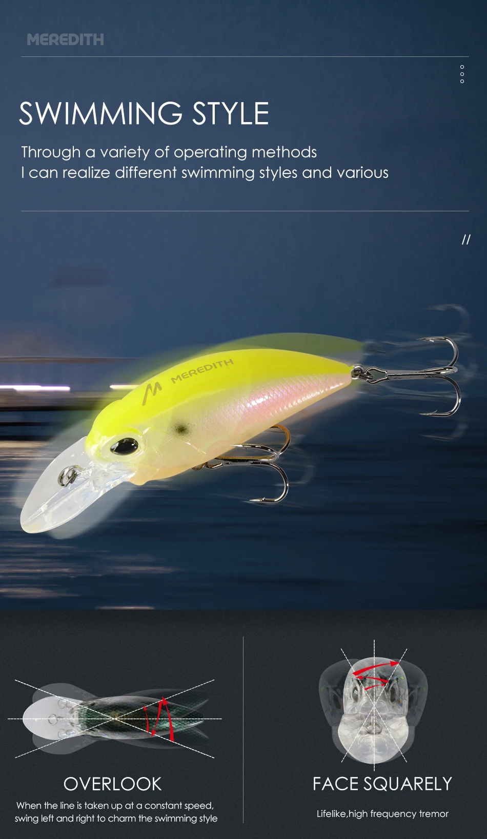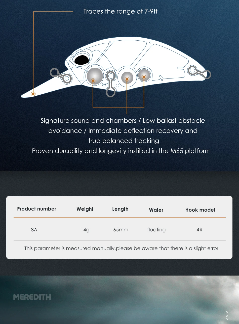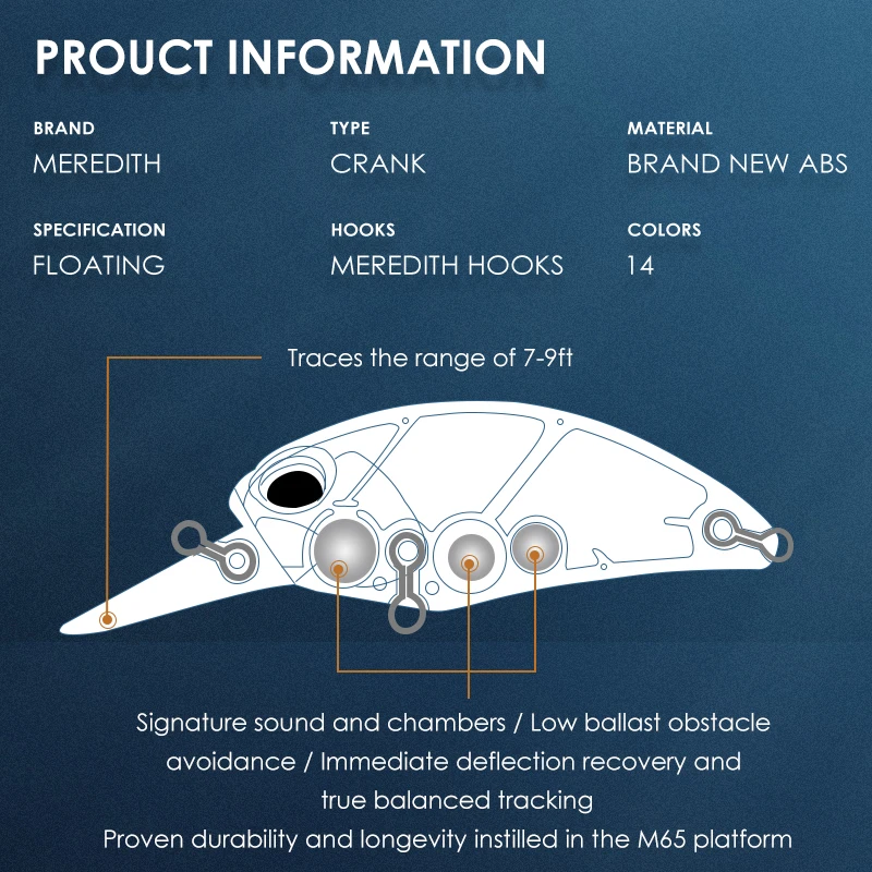 Кривошипный воблер MEREDITH, M65, 8A, 14 гр, хит продаж, жесткая приманка для рыбалки, 11 видов цветов, качественная профессиональная блесна глубина 2,0-2,5 м