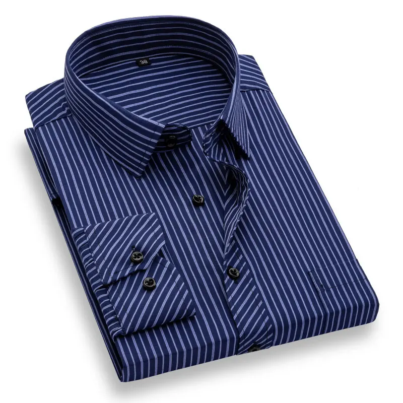 Мужская деловая рубашка в полоску, белая формальная рубашка с длинными рукавами, легкая в уходе Повседневная рубашка, Осень-зима 2019