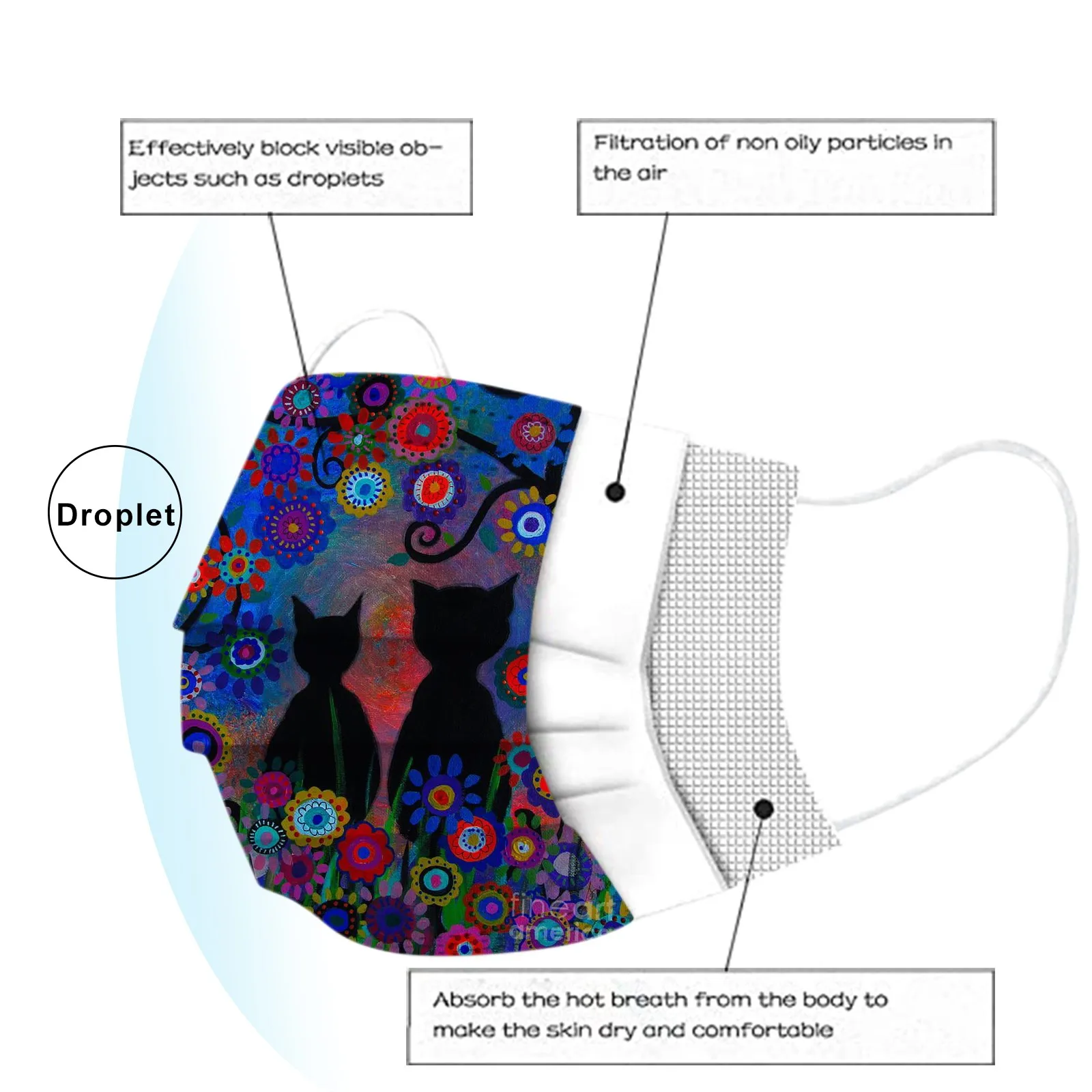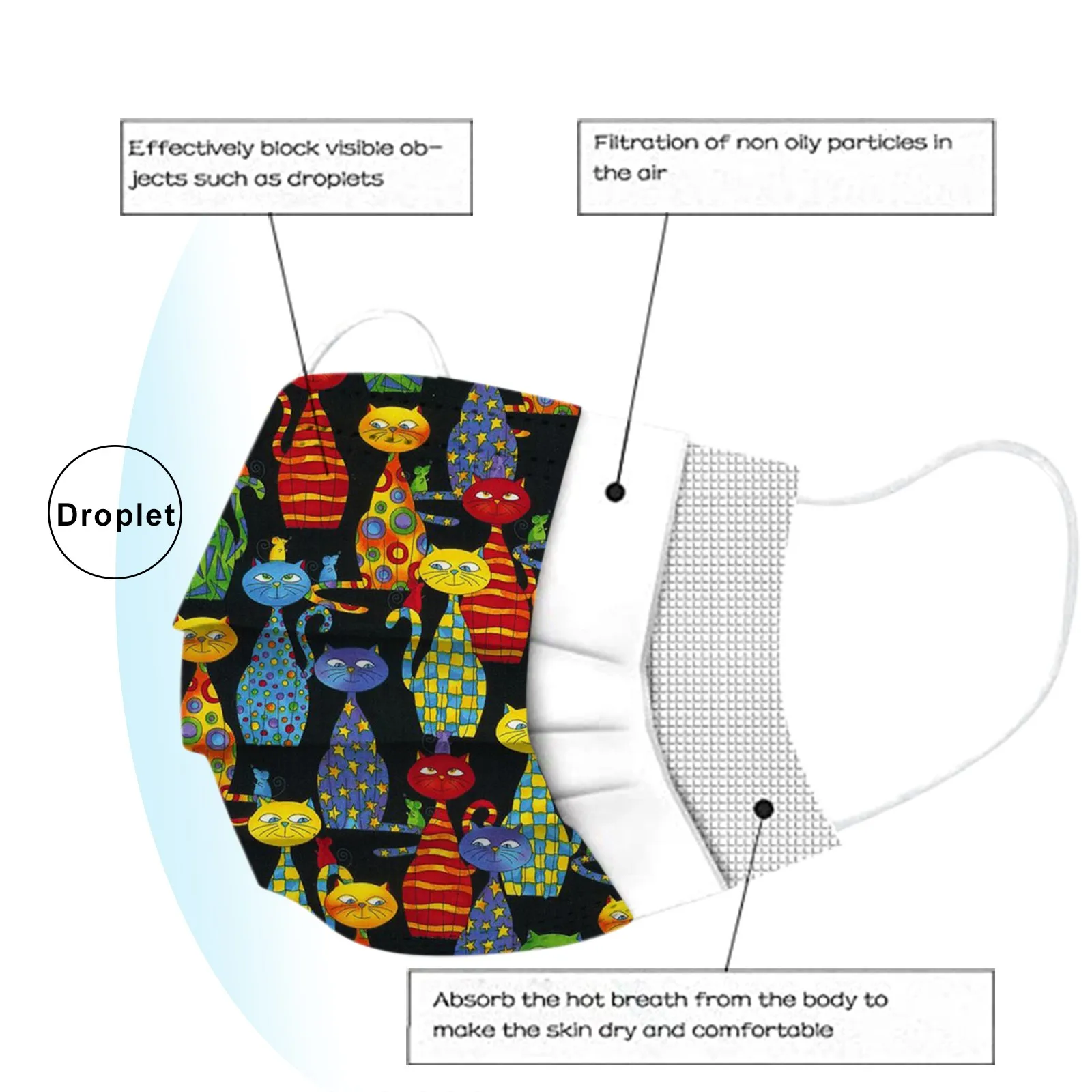 50 шт. аниме кошки маска для лица с рисунком кота из мультфильма для взрослых с принтом маска одноразовая маска для лица, Китай ткали 3 Слои слоев Фильтр Защитный лицевой щиток Mondkapjes Wasbaar