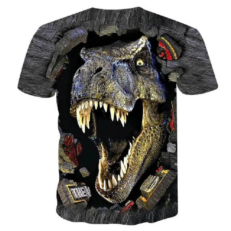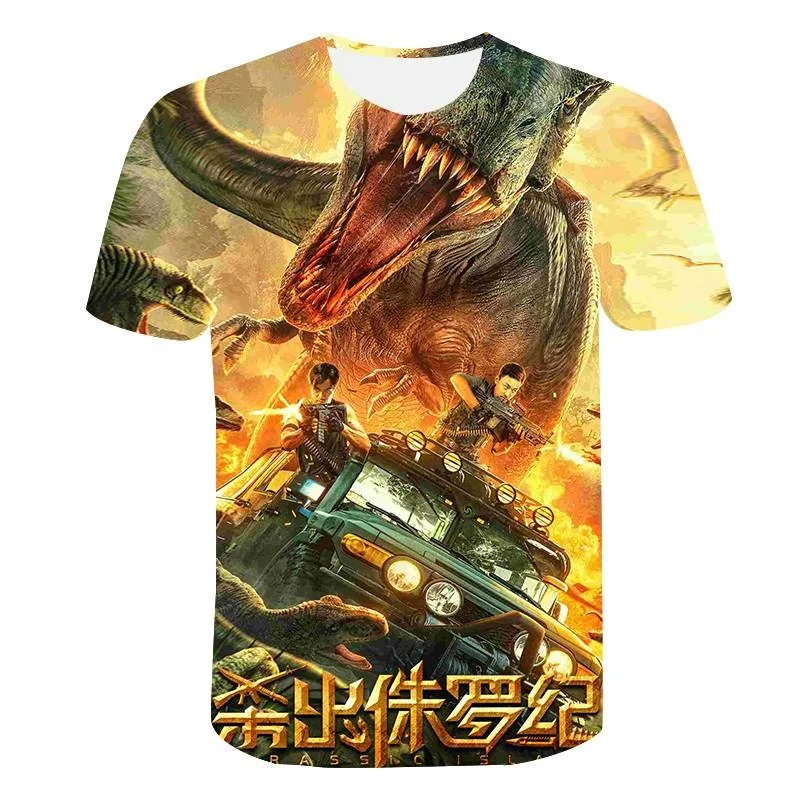 Лето 2021, детская двухсторонняя быстросохнущая одежда с 3D-принтом аниме динозавра, короткая футболка с круглым вырезом для мальчиков и девочек