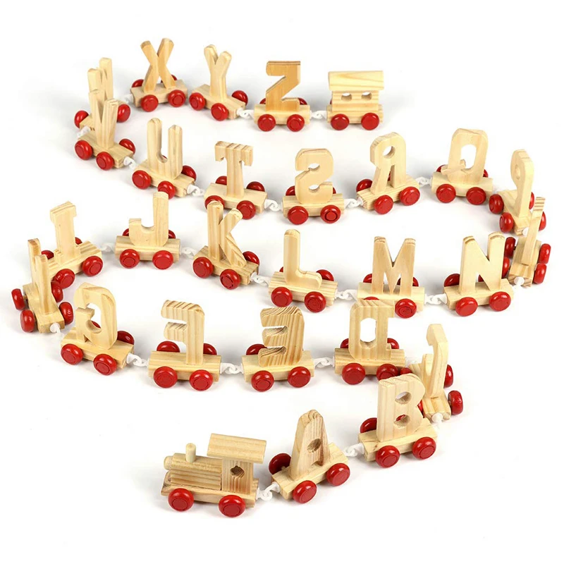 Поезд детский деревянный, 26 букв английского алфавита, A-Z