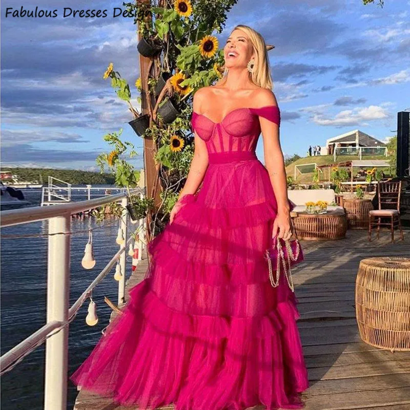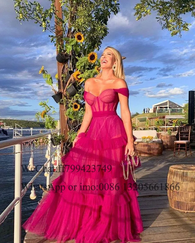 Пурпурное Многоярусное Тюлевое платье для выпускного вечера с открытыми плечами и вырезом сердечком с открытой спиной ТРАПЕЦИЕВИДНОЕ вечернее платье 2022 длинное свадебное платье