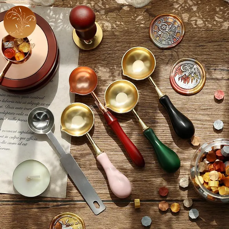 Ретро уплотнения ложка для воска деревянной ручкой уплотнения ложка для воска Вощеная бусинка плавильный котел уплотнения штамп ложка для воска Крафтовая Подарочная воск штамп ложка сургучная печать