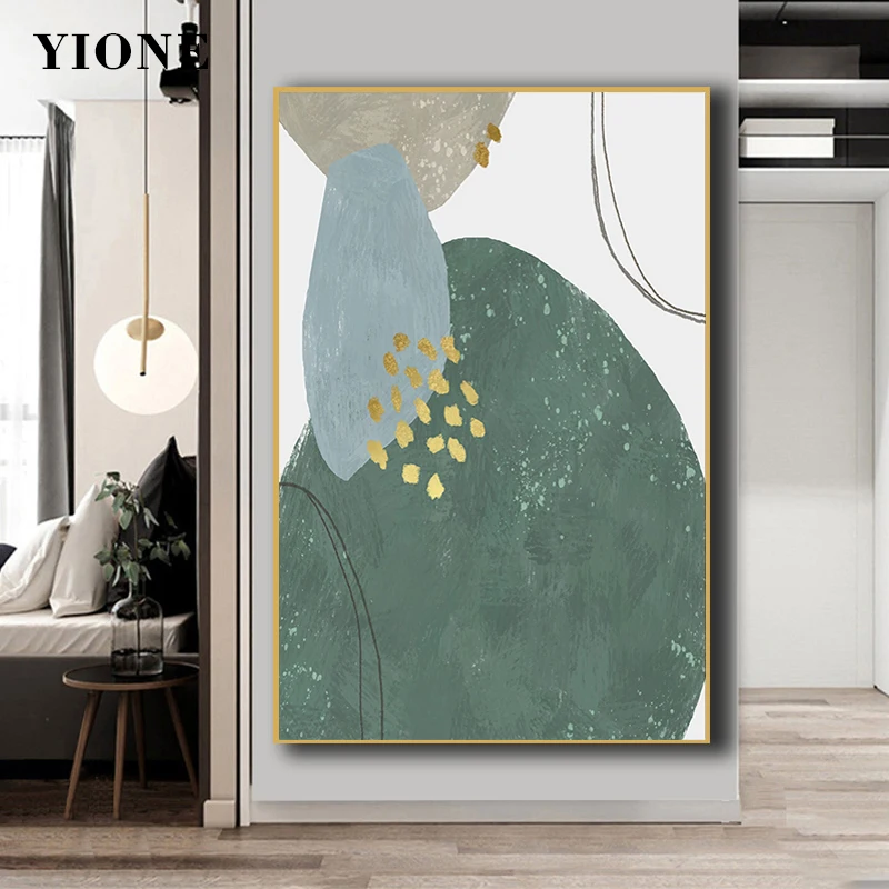 Современные абстрактные картины, минималистичные настенные картины с Зелеными камнями, настенные плакаты и принты на холсте, декор в скандинавском стиле для дома, гостиной