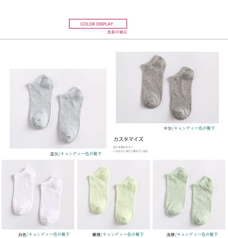 10 пар в комплекте; Сезон весна; Женские носки-подследники Невидимый каваи для девушек-студенток; Однотонная одежда ярких цветов; Хлопковые милые Дышащие Короткие носки