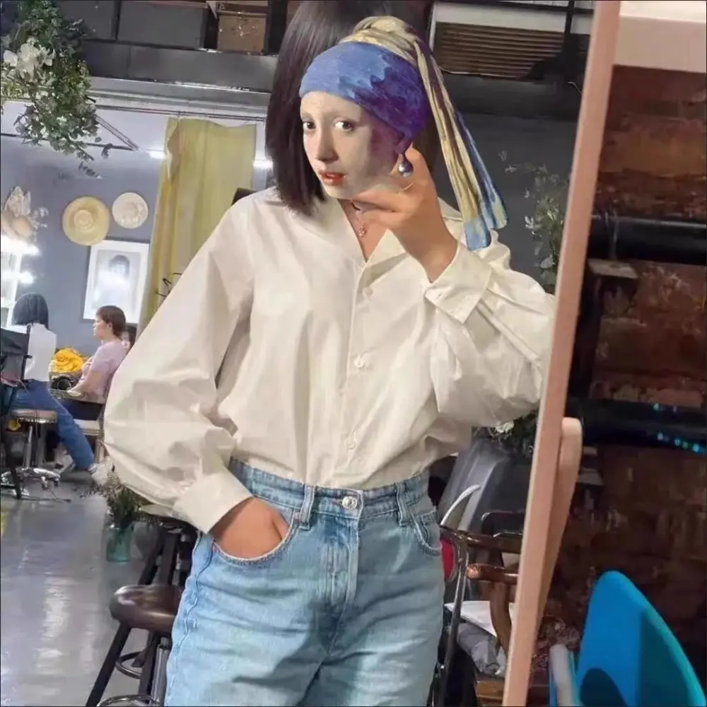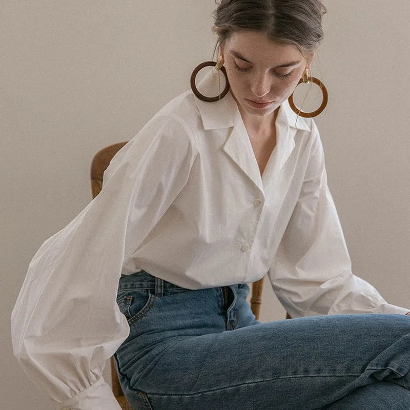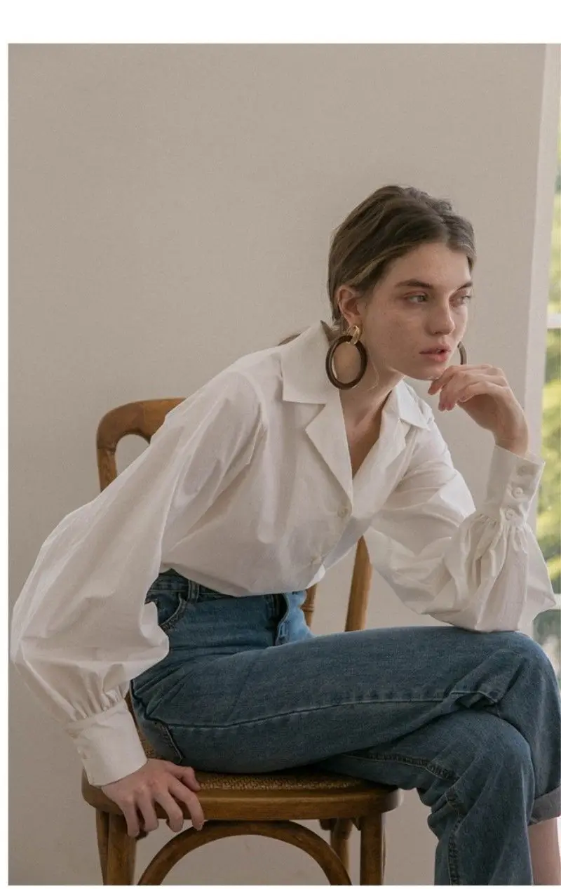 Белая хлопковая блузка Karrram, Женская винтажная рубашка с рукавам...