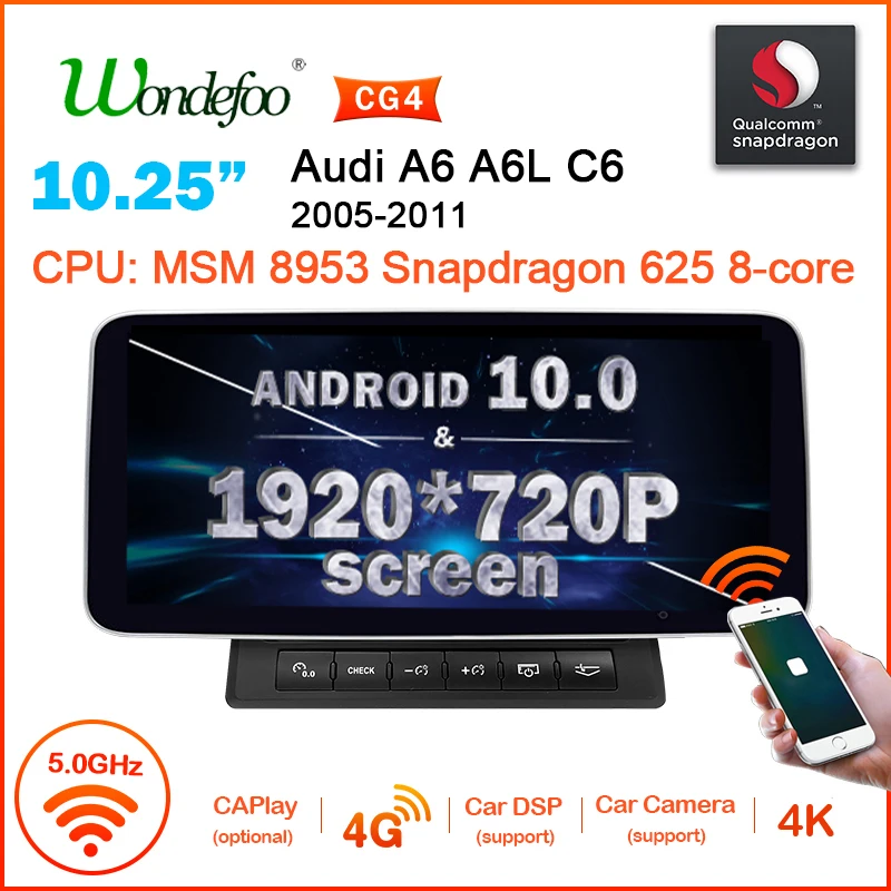 автомагнитола 2 din андроид Автомагнитола Snapdragon, Android 10, для Audi A6 A6L C6 2005-2011, GPS-навигация, стерео экран, bluetooth, мультимедийный плеер