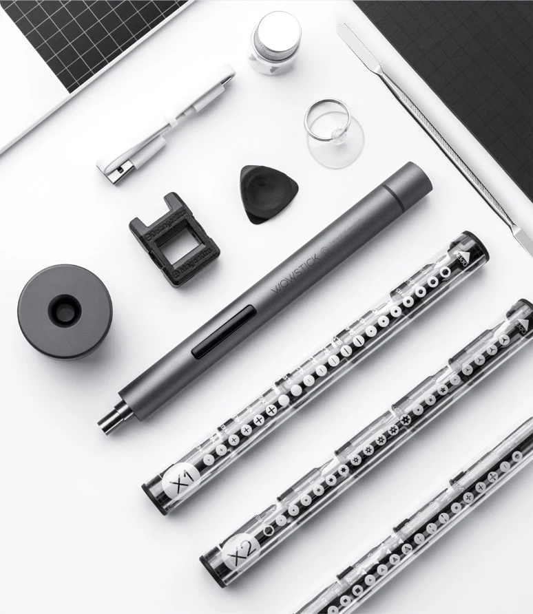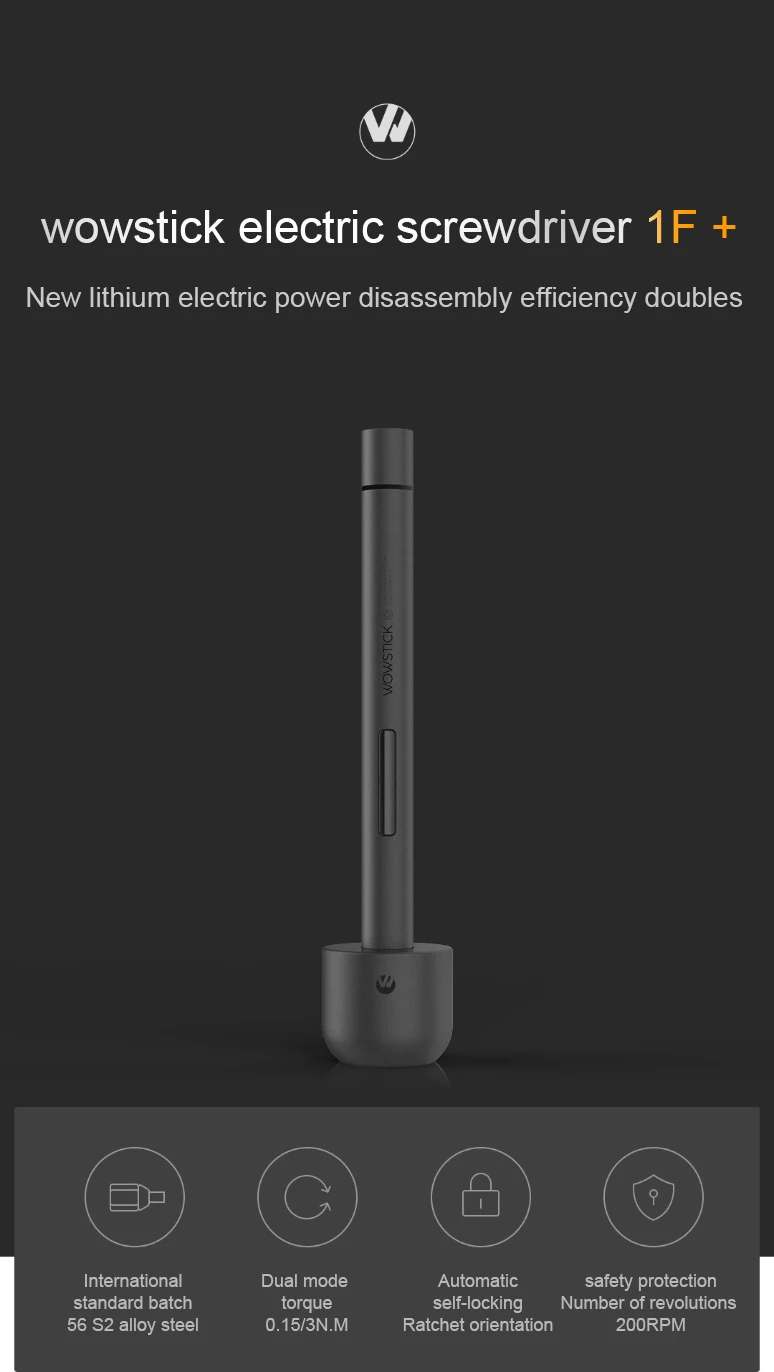 Электрическая отвертка Wowstick 1F + В два раза больше эффективность Новинка литиевая батарея питания разобратьВесь алюминиевый корпусДвойной режим ручной работыЗарядка через USB литиевый аккумулятор3л ED бестеневая лампа