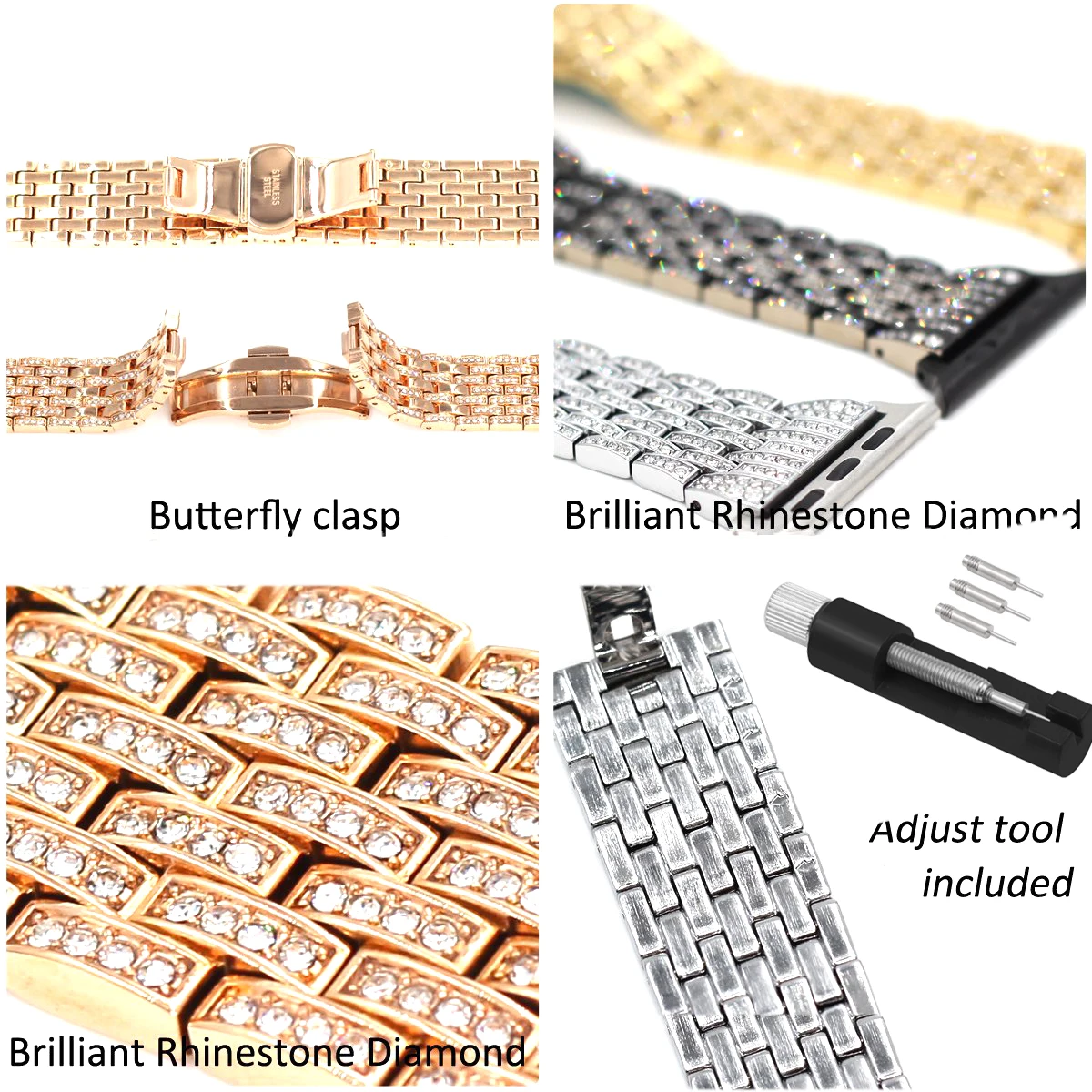 Браслет и чехол из нержавеющей стали с бриллиантами для Apple Watch...
