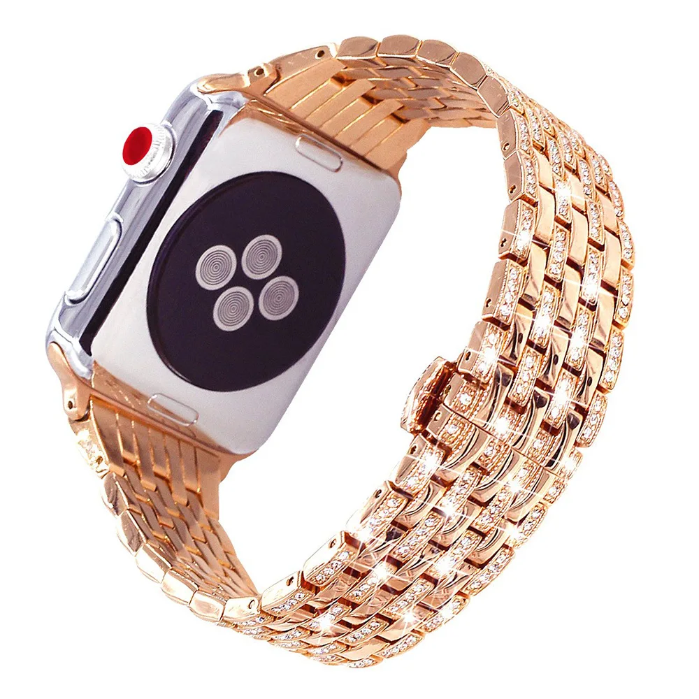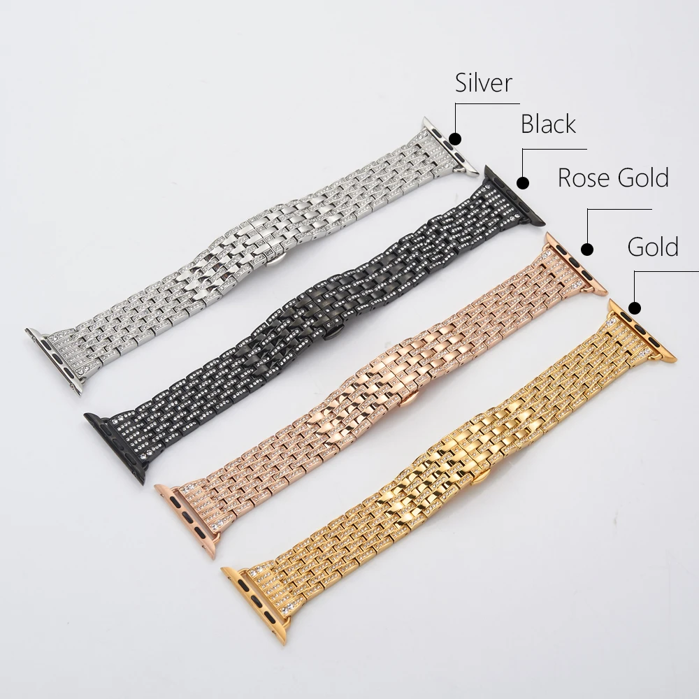 Для Apple Watch серии 1 2 3 38/42 мм ремешок с бриллиантами ремешок для часов З нержавеющей стали браслет Цветные Металлические наручные часы